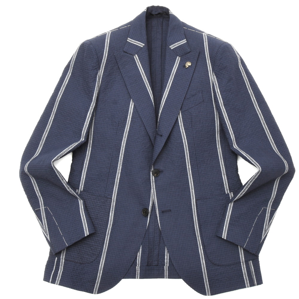 ほんのりとモダンな色気を纏わせてくれる“EDGE”シリーズ。こちら、目付け280gのリネン×コットン素材を使用したストライプパンツ。リネン特有の光沢感にドライなタッチからくるハリ感、そこにコットンを混紡することで程よくしなやかな質感に。また、ダークネイビーの細ピッチストライプがモダンな印象をもたらせてくれます。