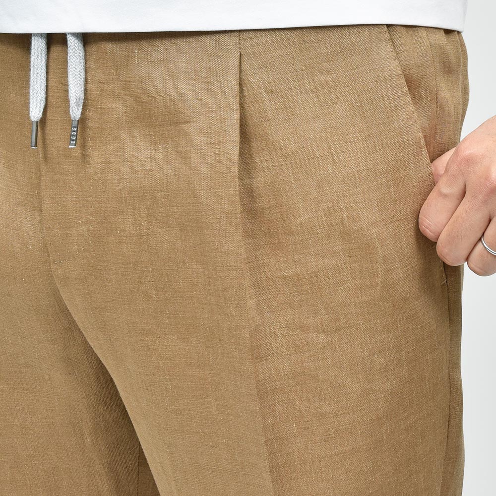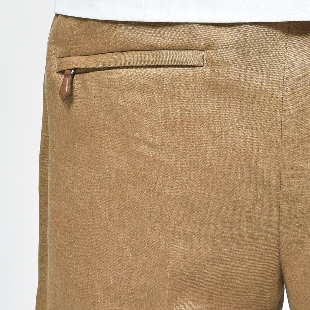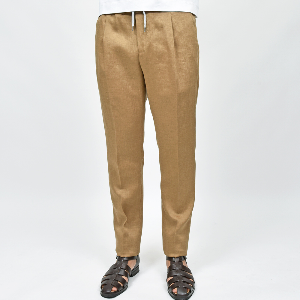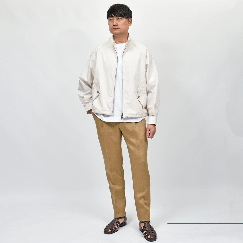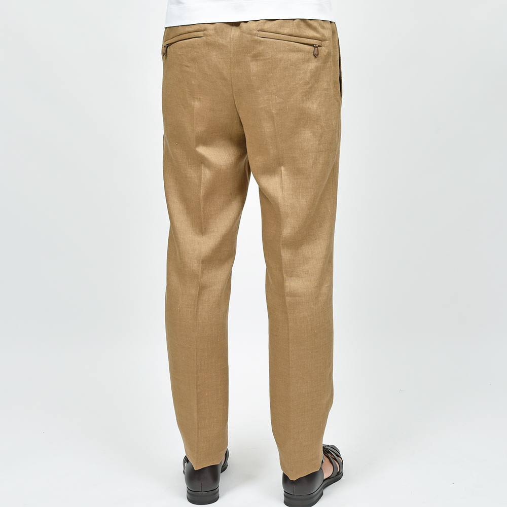 ドローコード仕様は好相性。リネンらしい艶のある上品な質感ですので、ラフなジャケットと合わせてもすんなりと馴染んでくれます。