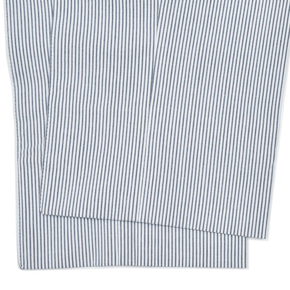 ココンチでは定番生地である目付け250gのストレッチ性を持ったシアサッカーは、凹凸感を控えめにしたややフラットな表情。しかしながら、清涼感が感じされる肌触りですので真夏にも快適に着用することができます。また、少し細いピッチのストライプが綺麗めな印象を作り上げてくれるため、カットソーやシャツは勿論のこと、軽いジャケットとの相性も言わずもがなです。