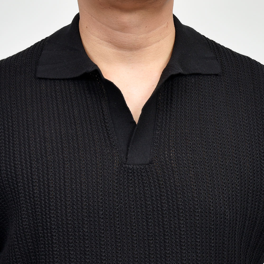鍵編みのハイゲージニットは、ほんのりと覗かせる地肌が色気を香らせてくれます。またスキッパーポロであれば、こなれた印象をもたらし一枚で着てもジャケットのインナーとしても非常に頼りになります。しなやかで柔らかなタッチが優しい肌触りは地肌で着たくなる素材感。1〜2サイズアップして少しゆとりを持って着るのがおすすめです。