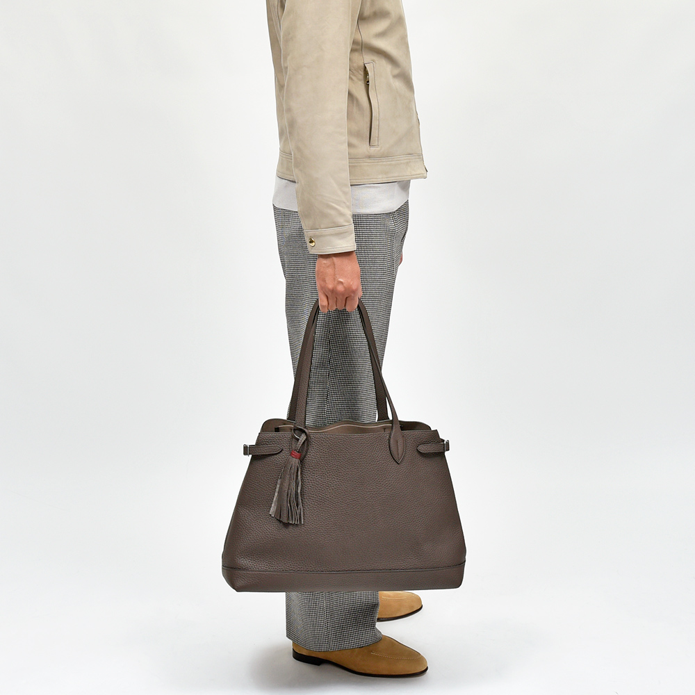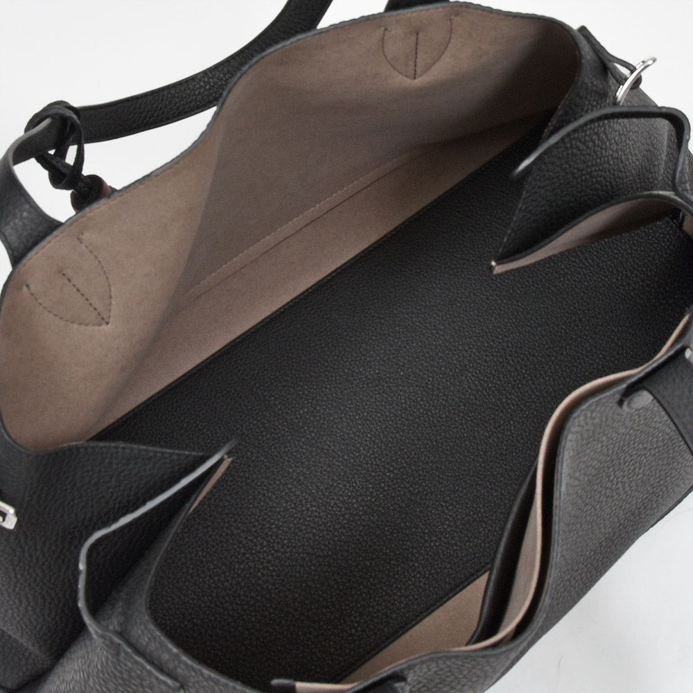 ACATEで人気の気軽に使いやすいトートバッグのモデル“LODOS(ロドス)”。デザインをマイナーチェンジしたこちらのモデル“LODOS2(ロドス2)”は、より洗練された上品な雰囲気を香らせています。芯地を使わずに、表革と裏地の人工スエードをボンディングすることで本体の軽さを生み、またしなやかさがある事でバッグ自体のフォルムと相まって柔らかな雰囲気を作り上げています。ACATE特有のナチュラルシュリンクレザーを使用した上質な質感は、大人の装いをより一層高めてくれる期待感が膨らみます。