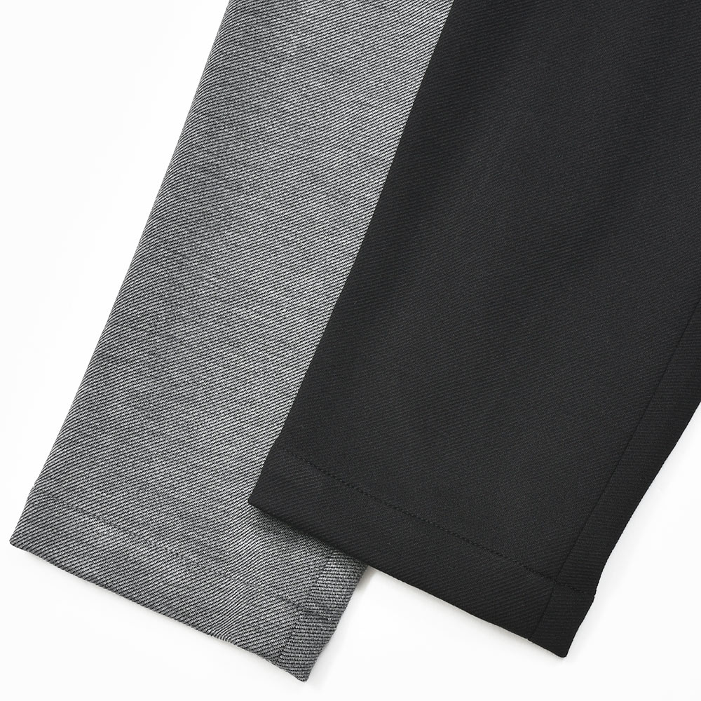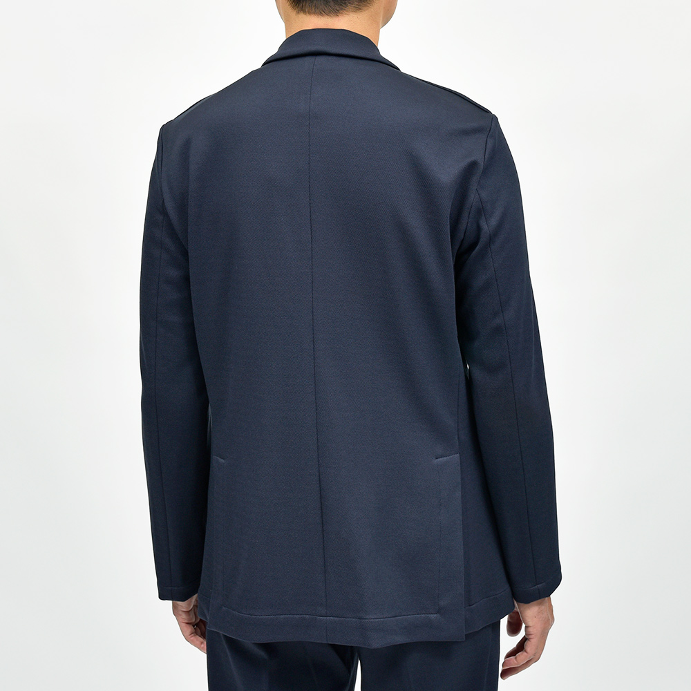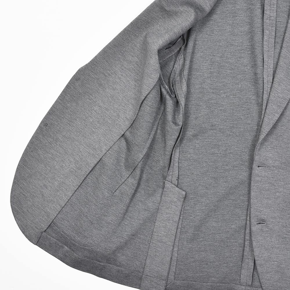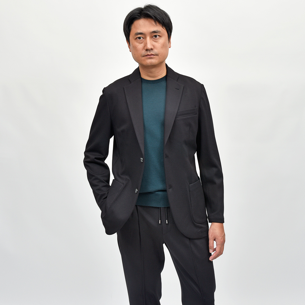 目付け520gのジャージー生地は、昨年に新登場した“カルゼジャージー”になります。ツイル織りよりも畝の感覚が広く表情が作りやすいカルゼ織りのようなジャージーは、言わずもがなのジャージーらしい着心地はそのままに、スポーティーさを抑えた見え方になります。また、自宅で水洗いできるため、デイリーユースには打って付けの機能を兼ね備えています。