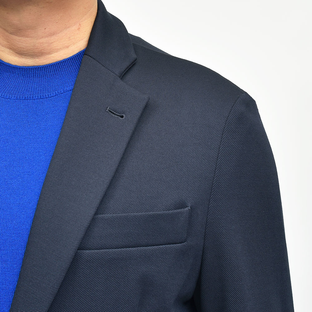 サイズ50でインナーにカットソーを着て、肩幅・身幅共に程よくゆとりのあるややリラックスしたサイズ感です。スッキリとスリムな印象で着るならサイズ48でも問題ありません。個人的にはドローコードパンツとも相性の良いサイズ50が好みです!