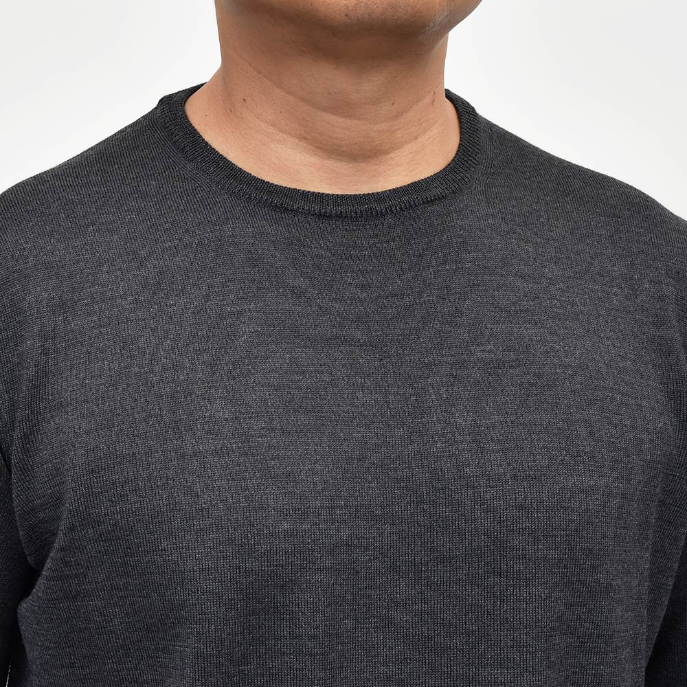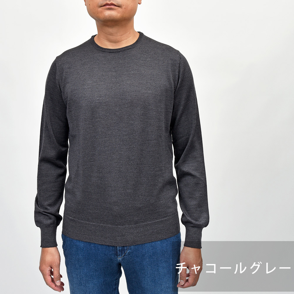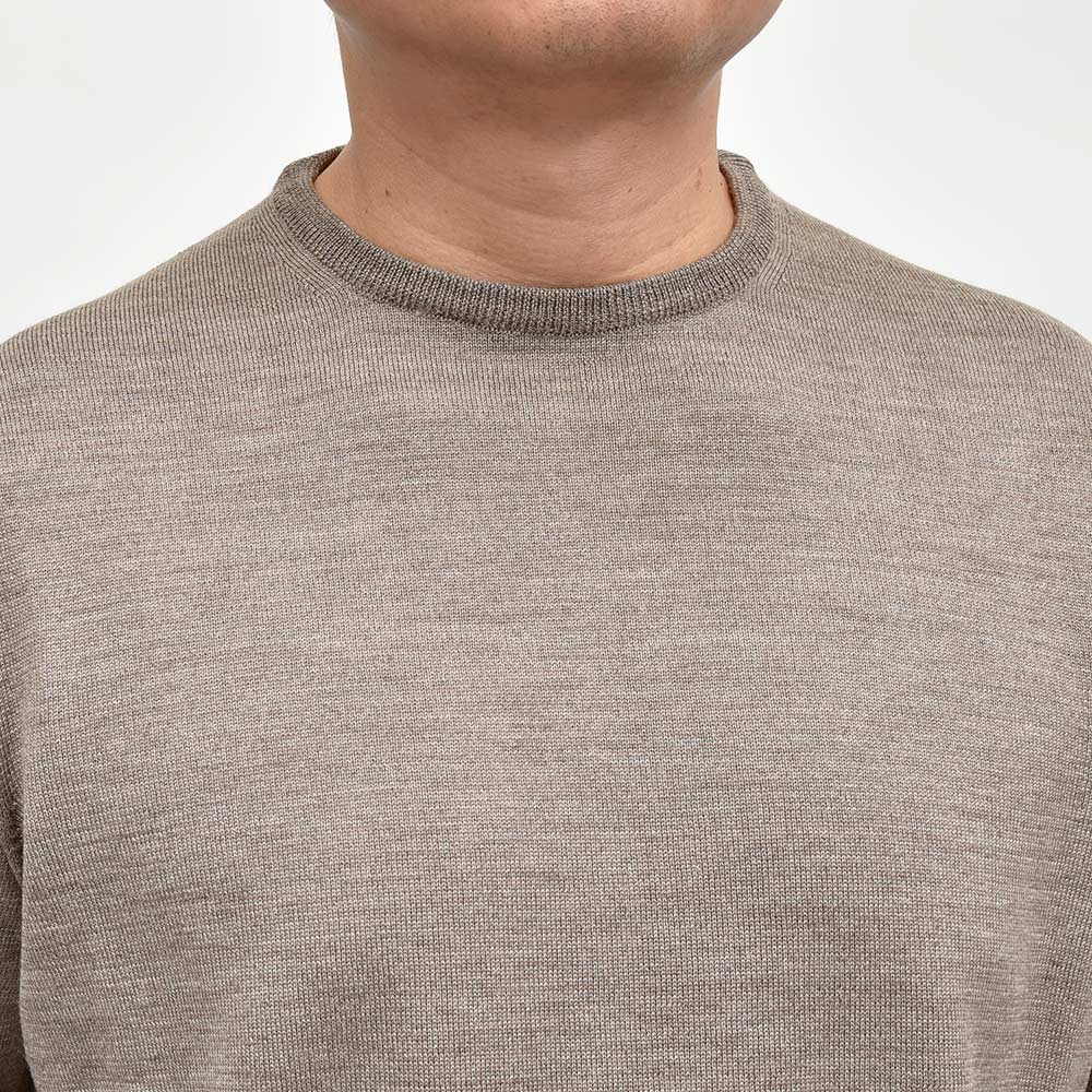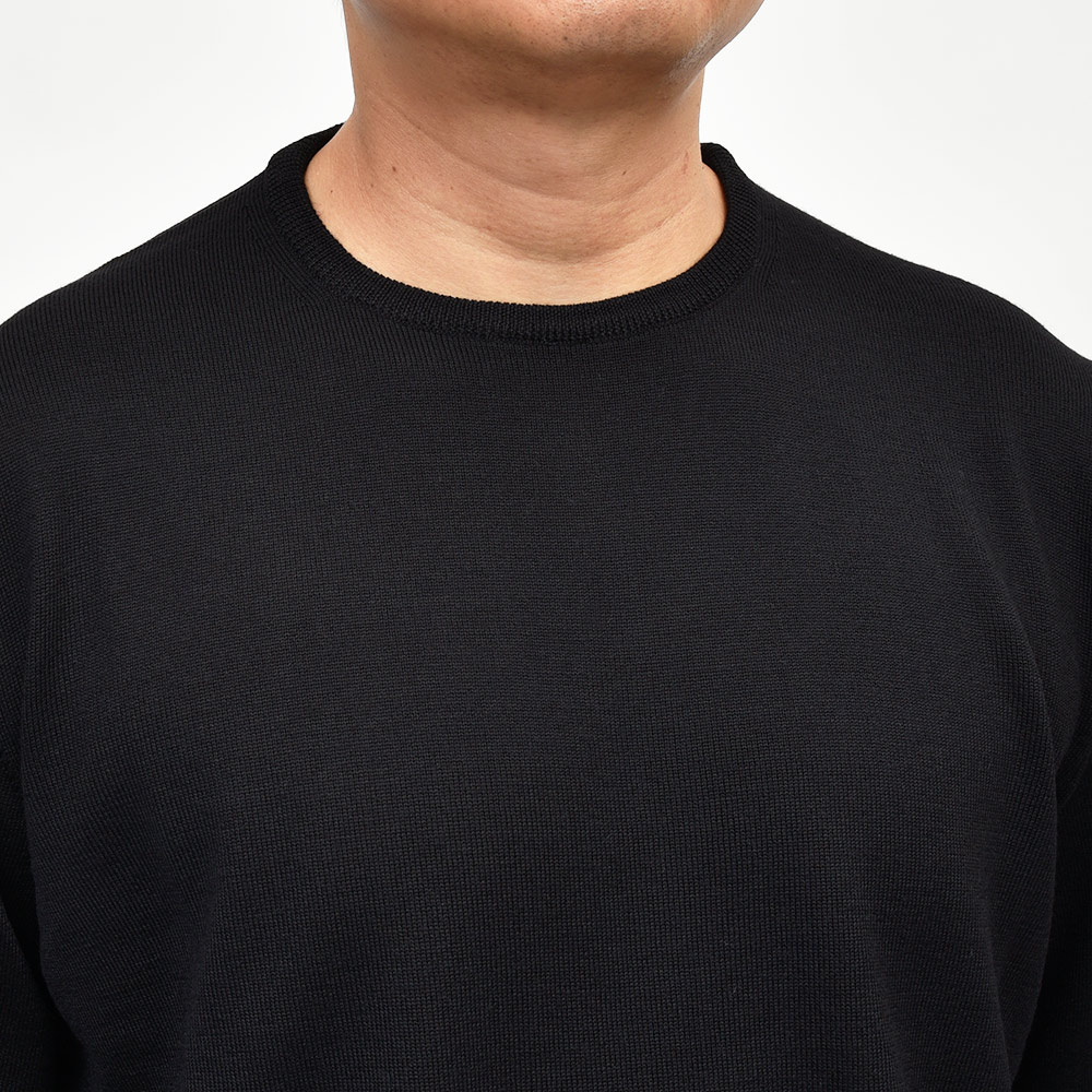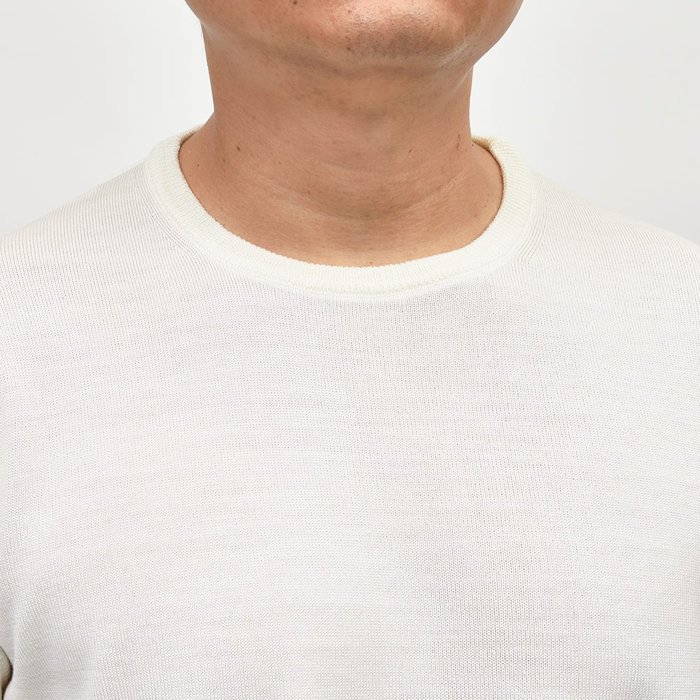 カジュアルな印象のあるクルーネックですが、この質感であれば品のあるスタイルが完成します。