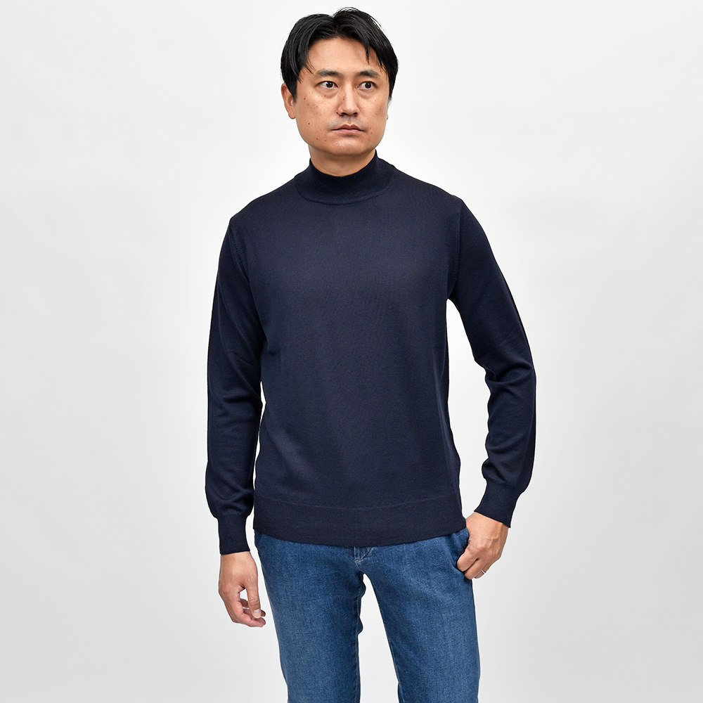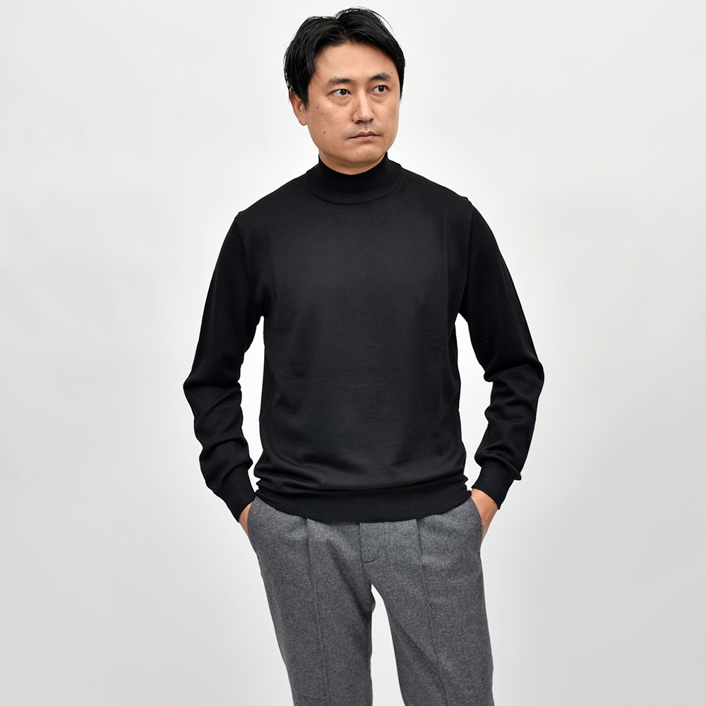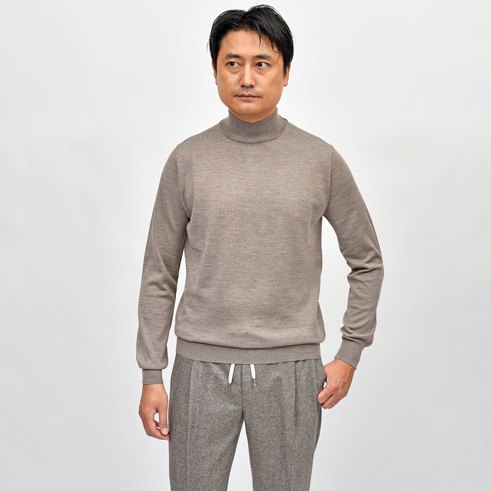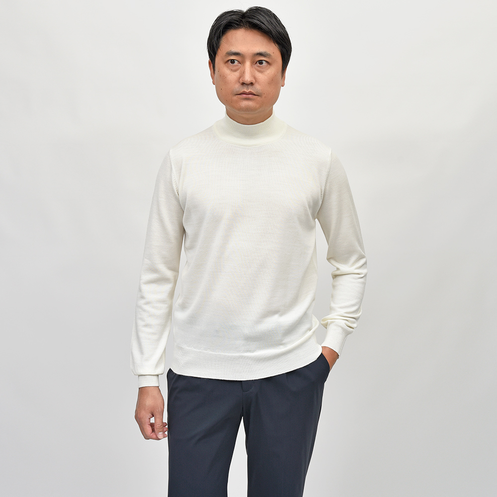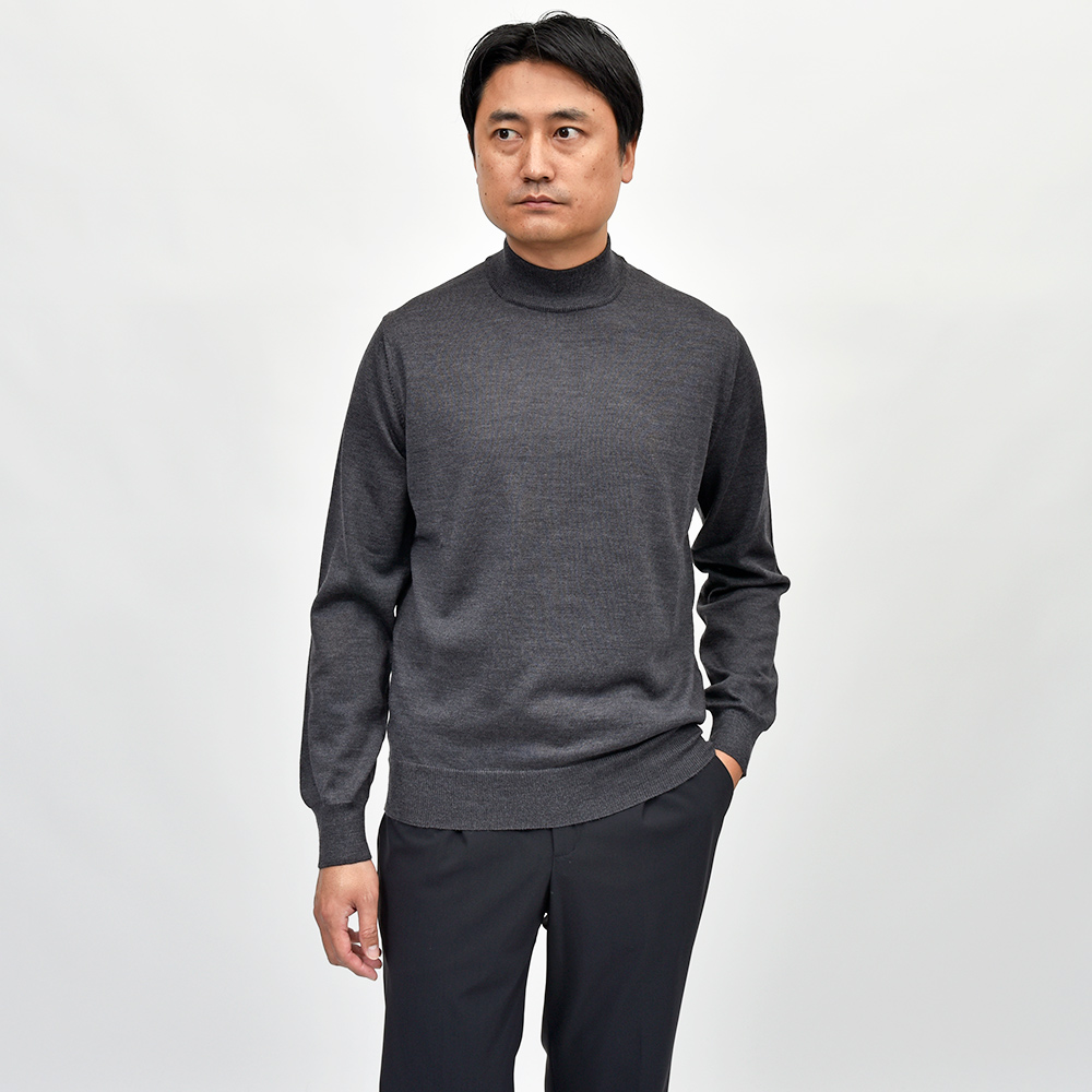 エクストラファインメリノウール ハイゲージ モックネックニット