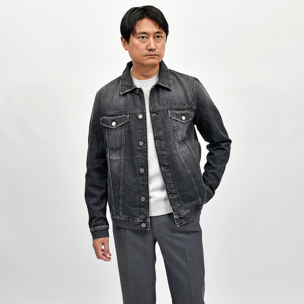 時代に合わせたサイズ感のトラッカージャケットは、モダンな着こなしがハマるブラックデニムが今の気分です。