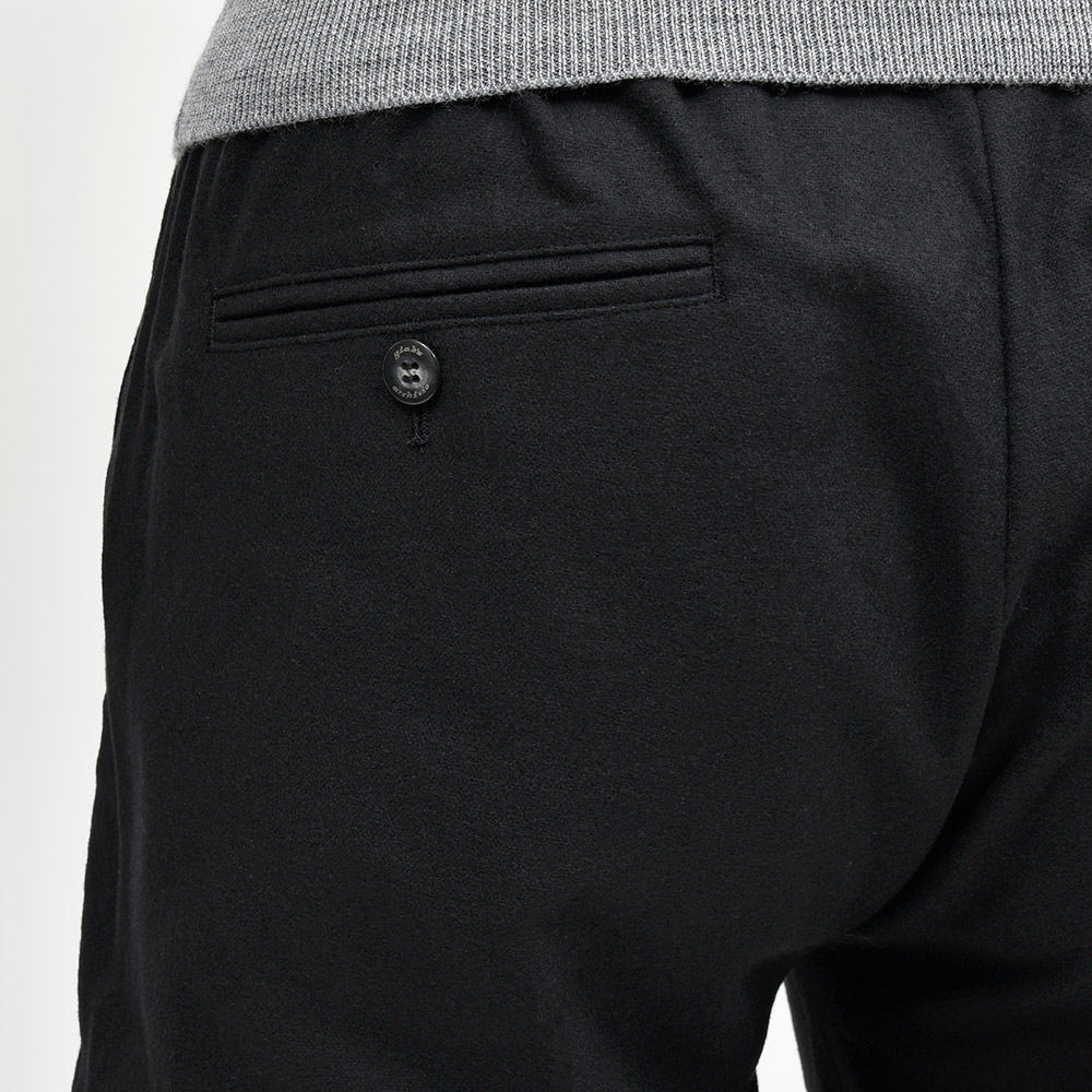 目付け310gのメランジを効かせたコチラの生地は、ジャガード織りのライトフランネルがウォーム感を感じさせる、ココンチで毎年人気の定番ファブリックになります。平織りでおられた生地は凹凸感が生まれ、メランジと相まってシンプルでありながらも確かな存在感を発揮。さらに、素材はウォッシャブルウールを使用し水洗いが可能となっているため、自宅で気軽にウールパンツのケアができるのは嬉しい限りです。