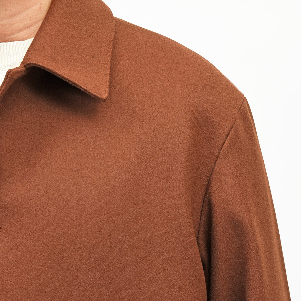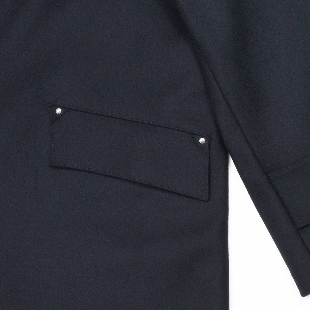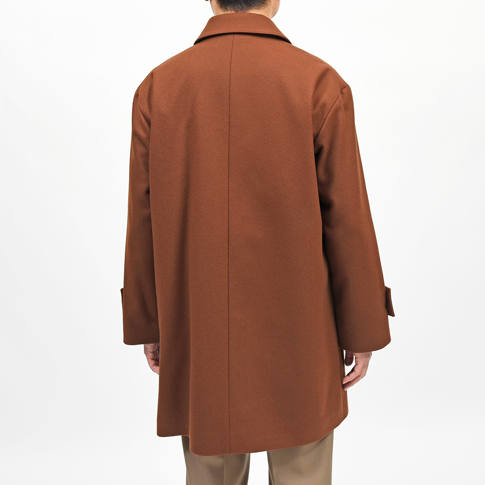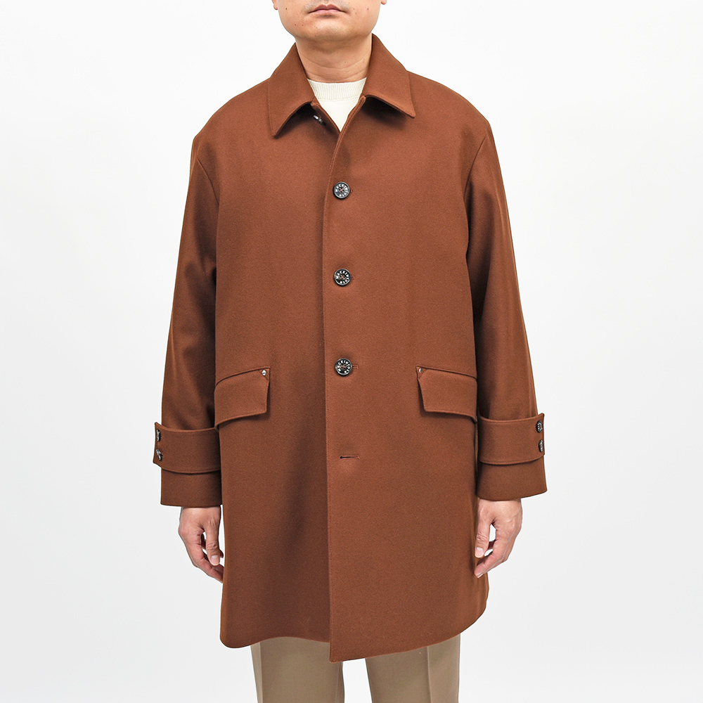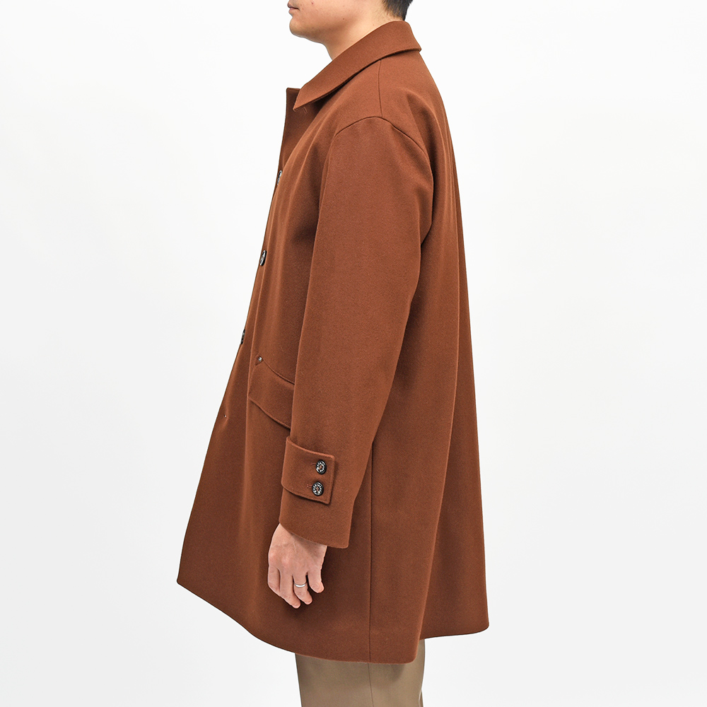 柔らかな質感としなやかな風合いを持つ、MACKINTOSHでは定番のウールメルトンを使用。バランスの取れた適度なウエイトのメルトンは、一般的なメルトンよりも軽く、用尺の多いコートであっても重量を感じずに軽やかに着られるよう仕上げられています。
