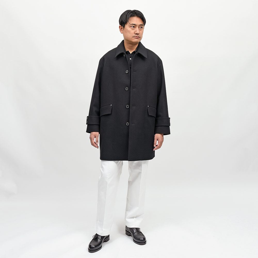 今やMACKINTOSHを代表するモデルと言っても過言ではない“HUMBIE(ハンビー)”。こちらはオーバーサイズ・ワイドシルエットのHUMBIEをオンシーンでも着用しやすいよう、フィッティングをアレンジした“HUMBIE SL”になります。HUMBIEらしいオーバーサイズでありながらも、バランスの取れたミニマルで上品な佇まい。時代性を踏まえるとオンでもオフでも着回せる一着となっています。