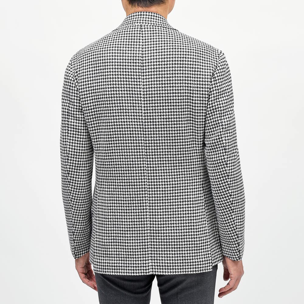 モダンな色気を香らせるハウンドトゥースジャケットは、モノトーンの配色がスタイリングし易い一着です。