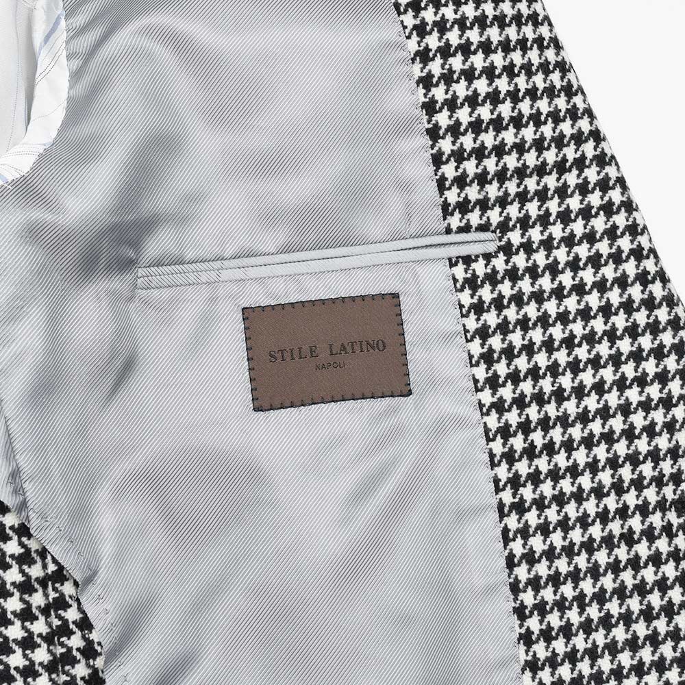 ツイード調の見た目ですが、目付け310gと秋冬素材ではやや軽いウエイトのハウンドトゥース。起毛感はありながらも目付けが軽いため、昨今の気候が加味された一着となっています。ブラック×ホワイトのハウンドトゥースは、何とも言えないモダンな色気を香らせています。