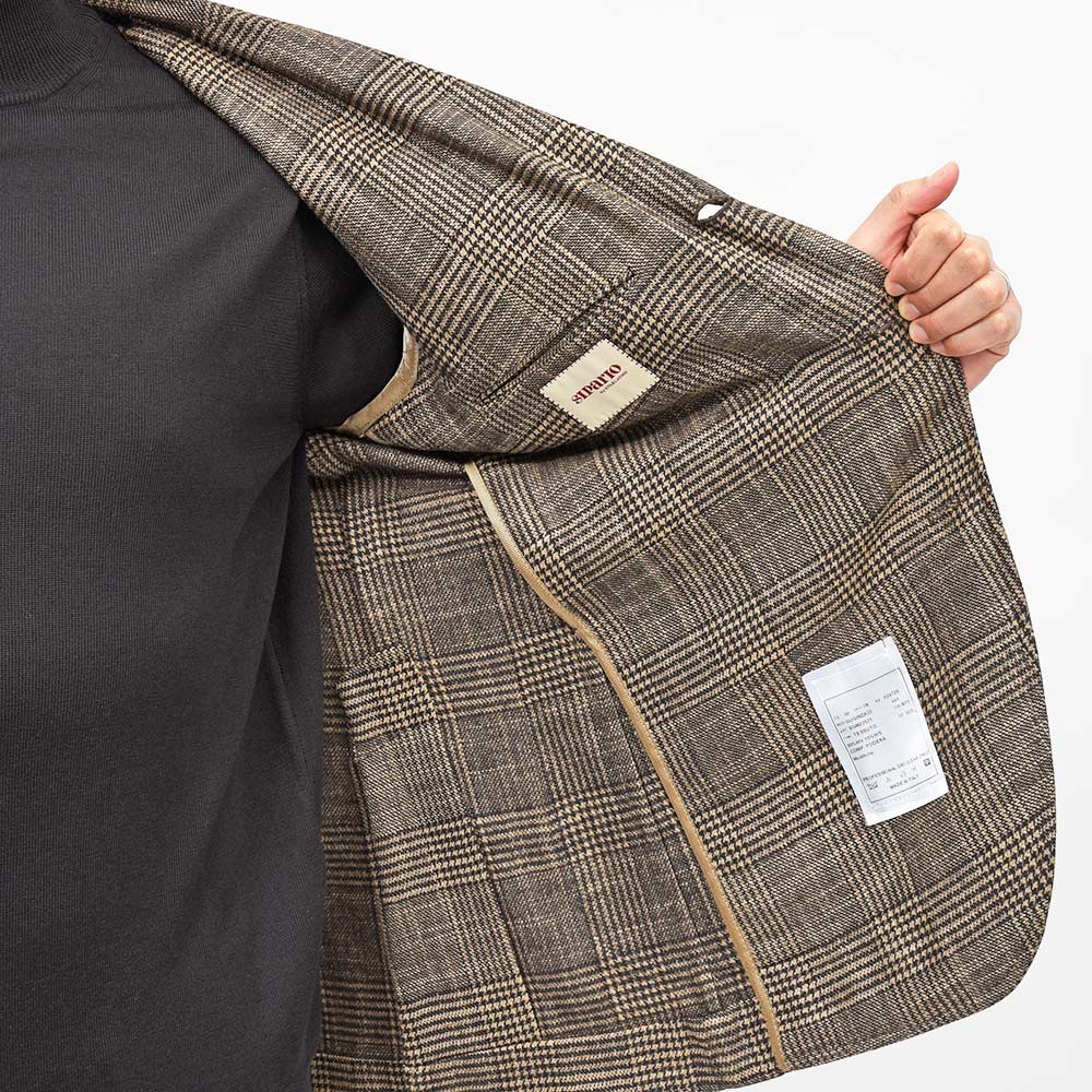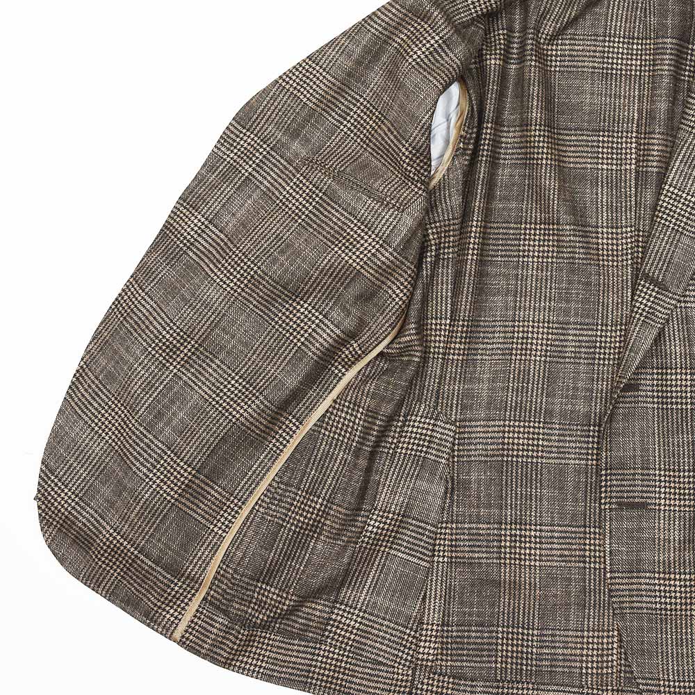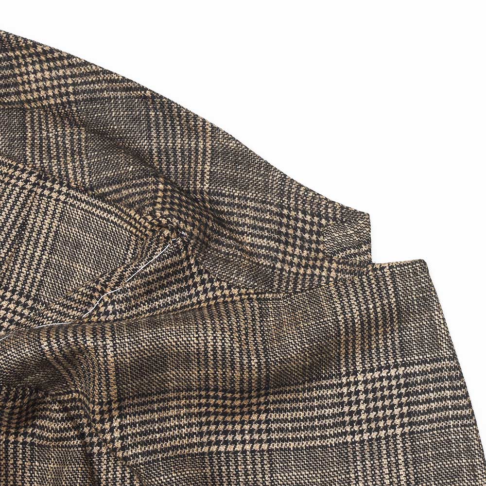 秋冬ではやや軽い目付け290gのグレンチェックジャケットは、ヴァージンウール×カシミヤの贅沢な素材使い。ヴァージンウールの滑らかな光沢感に、カシミヤのふんわりと柔らかなタッチがクラス感のある佇まいです。また、副資材をほとんど省いた段返り3つボタンシングルジャケットのニューモデル“GINZA”を採用。裏地も袖裏のみと非常に軽やかでありながらも、アンコンジャケットとは思えないエレガントな姿を作り上げてくれます。