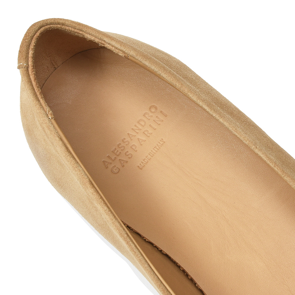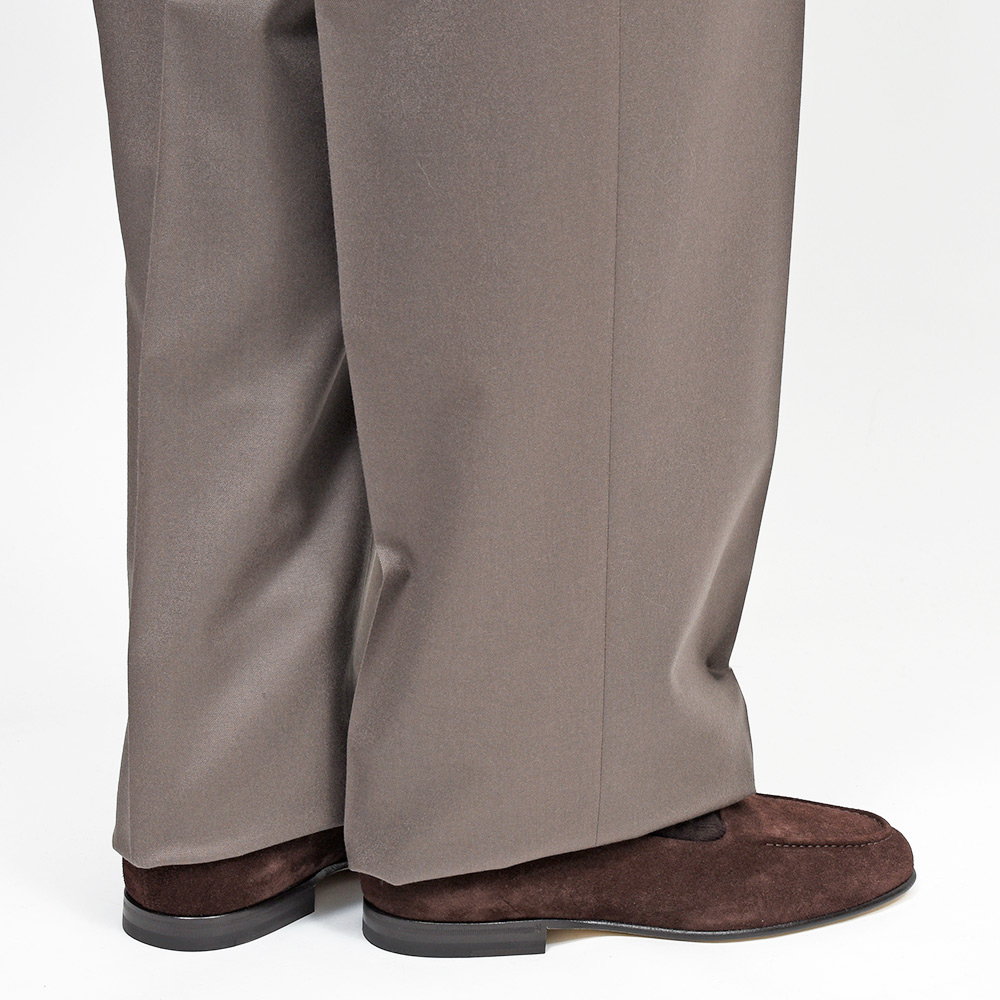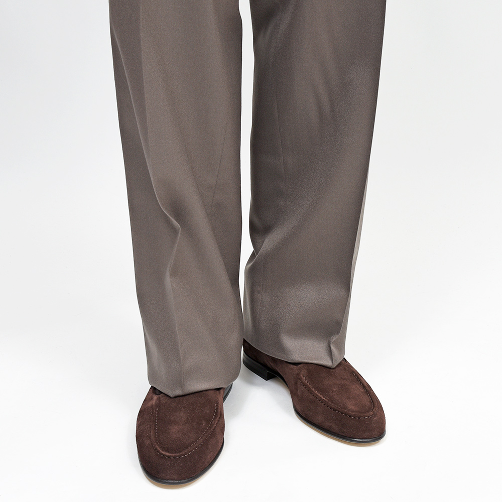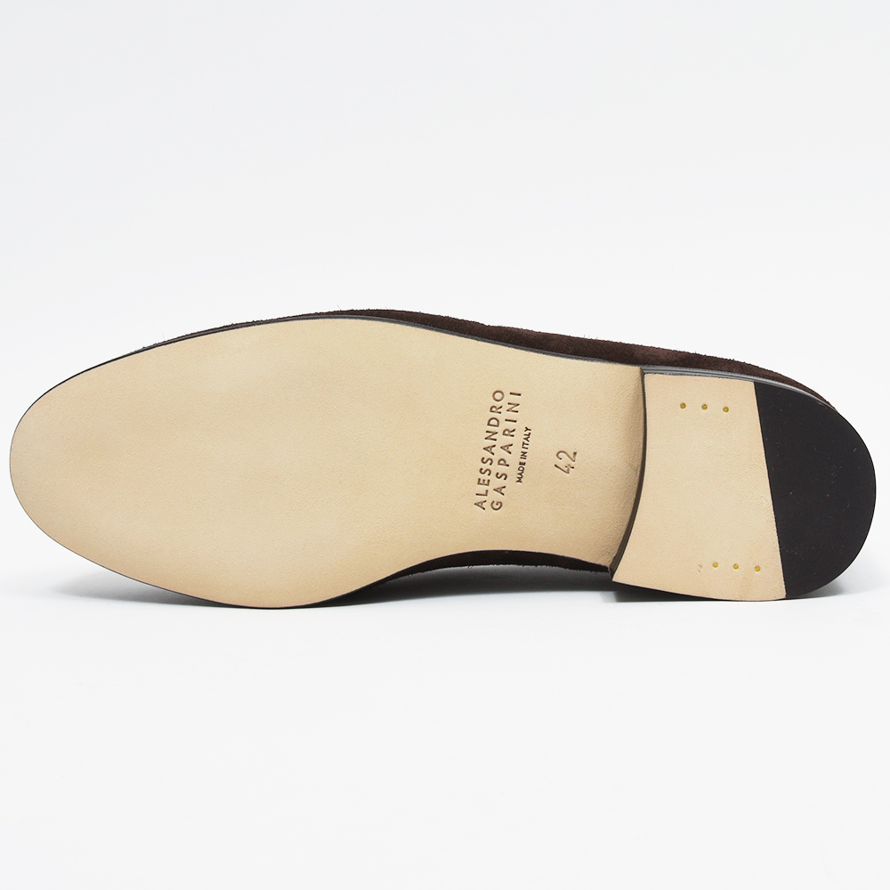 ソールはイタリア産の牛革。耐久性に優れた肩部分を使用し、様々な種類の木材や植物から抽出した天然成分を用いたベジタブルタンニングによって鞣されています。スエードモデルのソールは天然素材のまま特殊な技術で磨かれ、ヌバック効果を与えることでカジュアルな印象に仕上げています。
