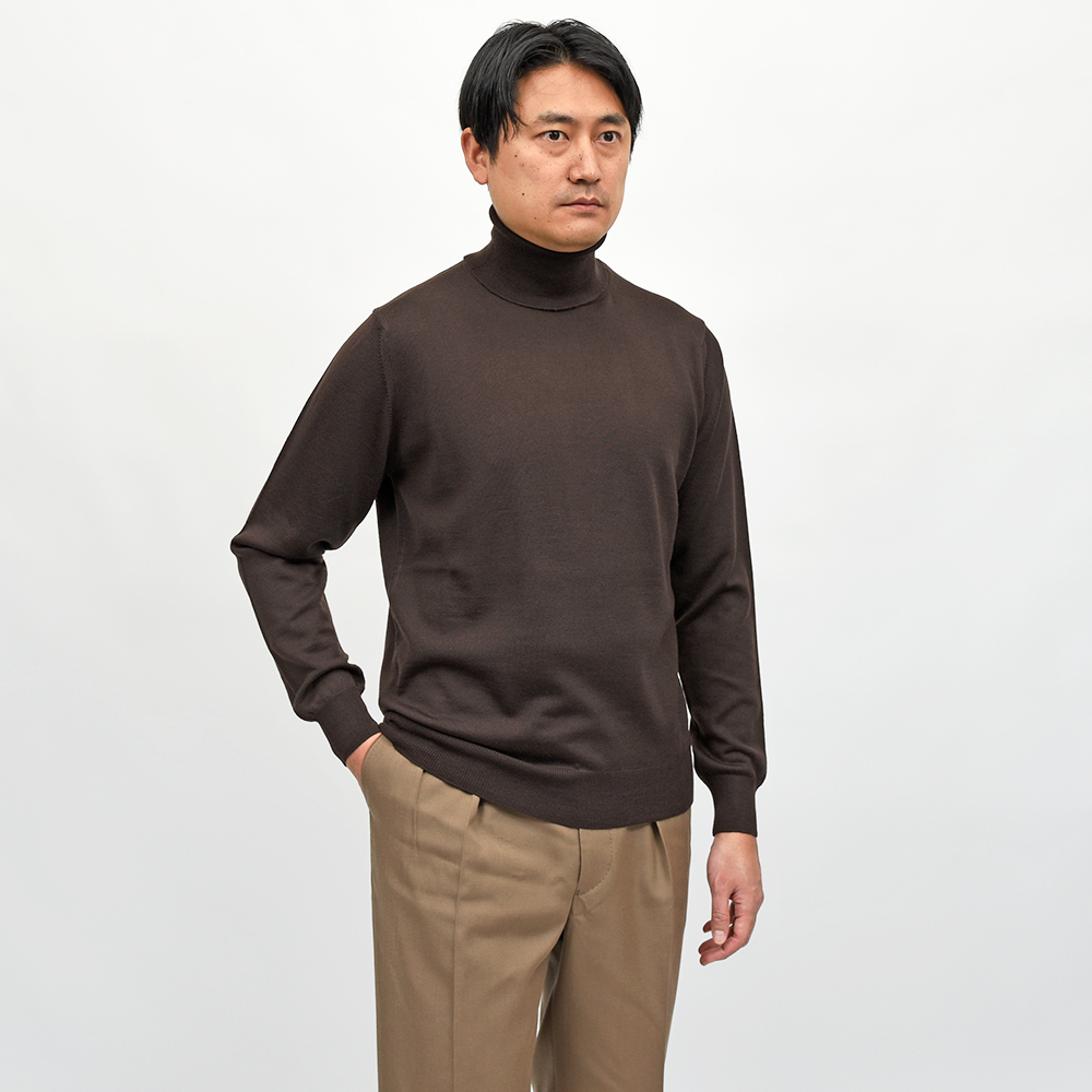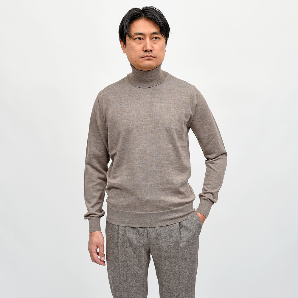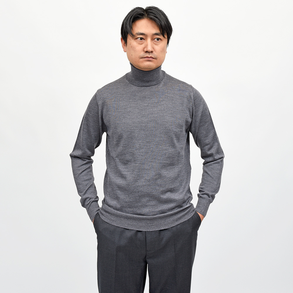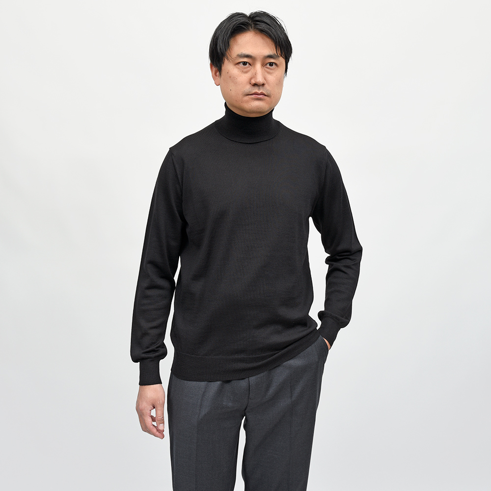 エクストラファインメリノウール 12ゲージ タートルネックニット