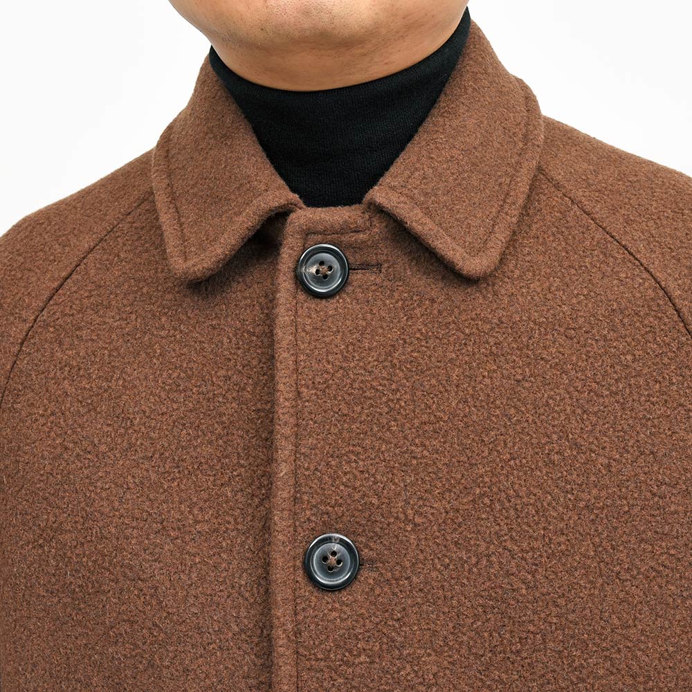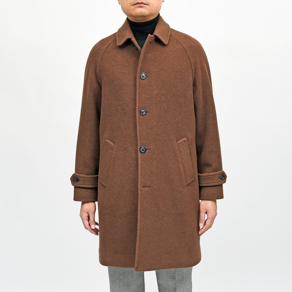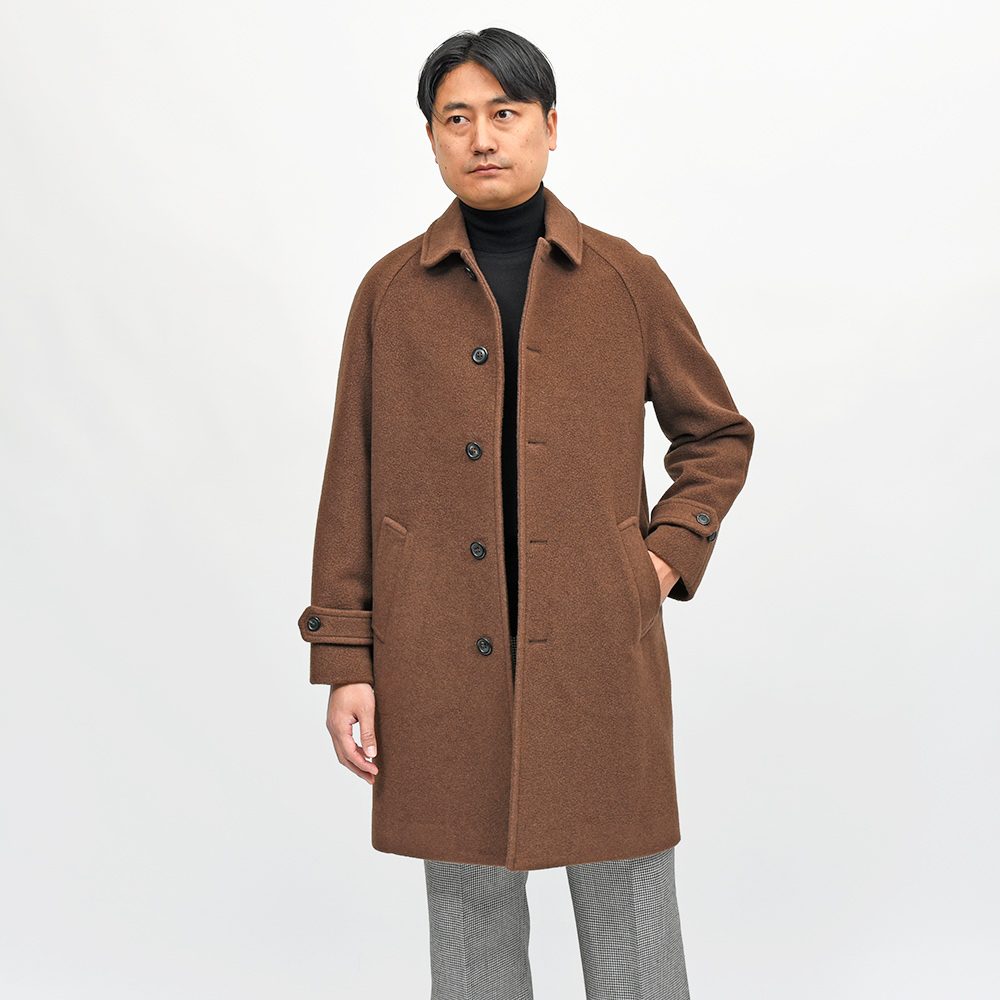 ウール×カシミヤ素材を使用したラグランスリーブコートは、仄かなメランジ感に凹凸のある表情が特徴的。また、5つボタンのステンカラーコートは、オンでもオフでも着回せる汎用性あるデザインです。一見するとしっかりとした仕立てですが、ジャージー特有のストレスフリーな着心地ですので、一着あると非常に便利なアイテムと言えます。
