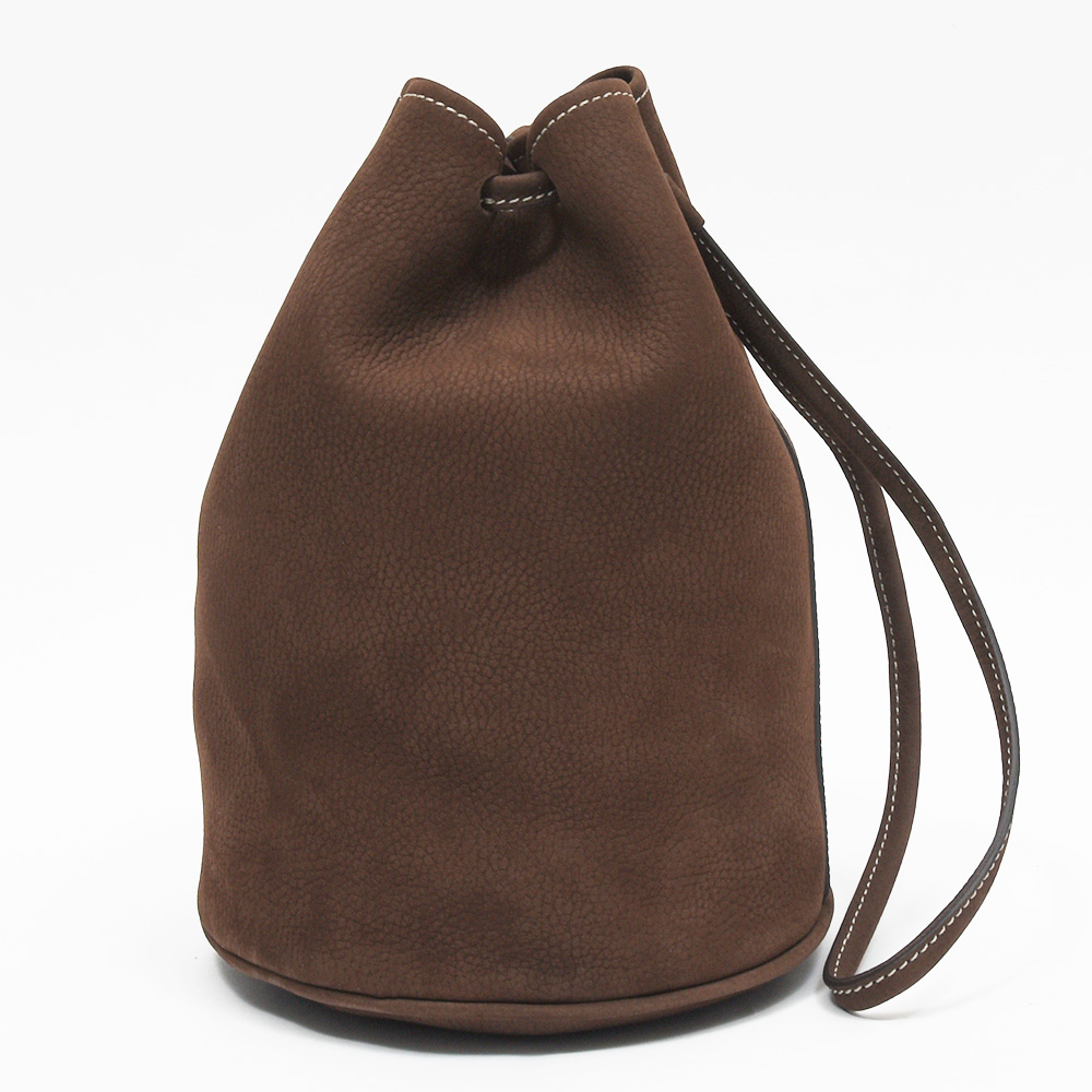 普段使いに丁度良いサイズ感の縦長の巾着型バッグ“Escala”。スマートフォンや財布、ペットボトルまで入る高い収納力は、様々なシーンでの使用が想像できます。また、上質な素材使いによってカジュアルは勿論のこと、ドレススタイルにも対応できる非常に便利な一品です。