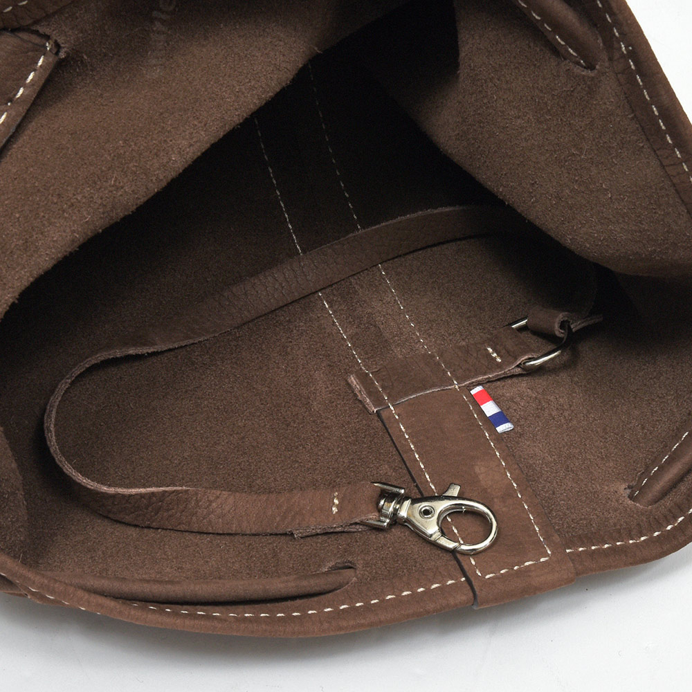 フランスのレミーカリア社のトップグレードの ヌバックレザーを使用。非常に柔らかく、かつハリがありモチッとした高級感のある風合いに、ライニングなしのアンライドで使用することで、上質な革の質感を余すことなく感じることができます。革の裁断はほどんどが手作業で行われており、すべての工程を一人の職人が仕上げることで高い品質を維持し、妥協のない物作りを今なお続けています。