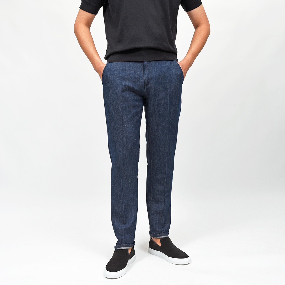 春夏に打って付けの少し清涼感のあるデニム生地は、ジャケパンにも使いやすいデニムスラックスでご用意しました。