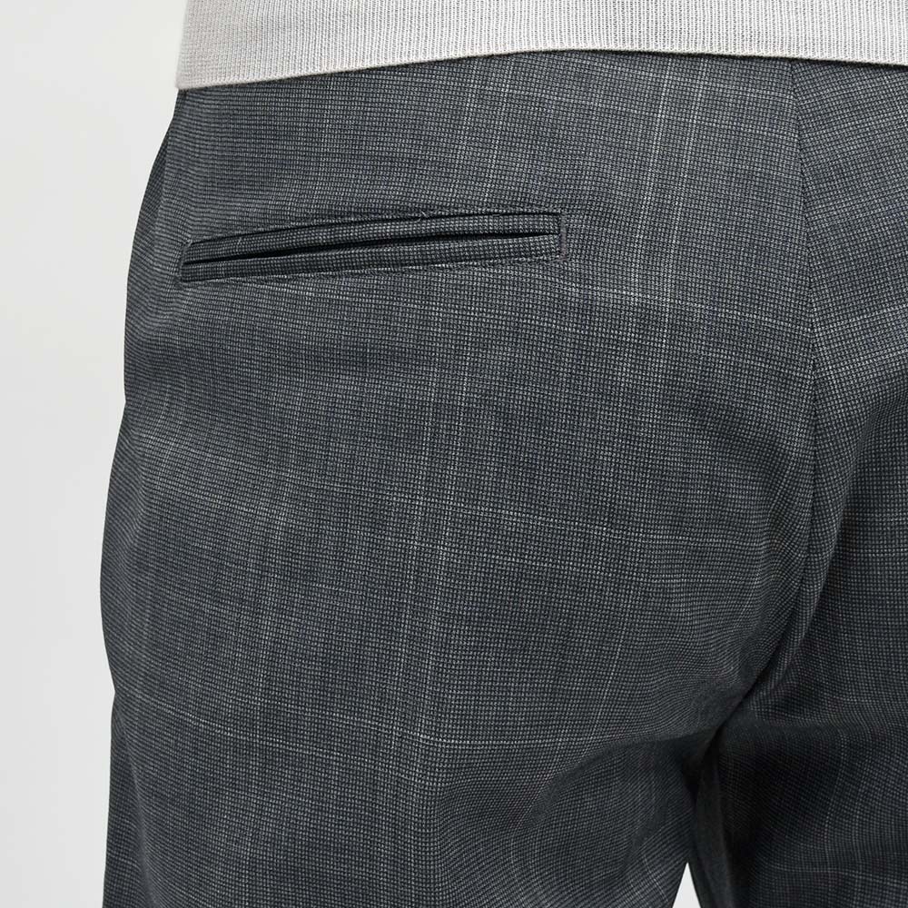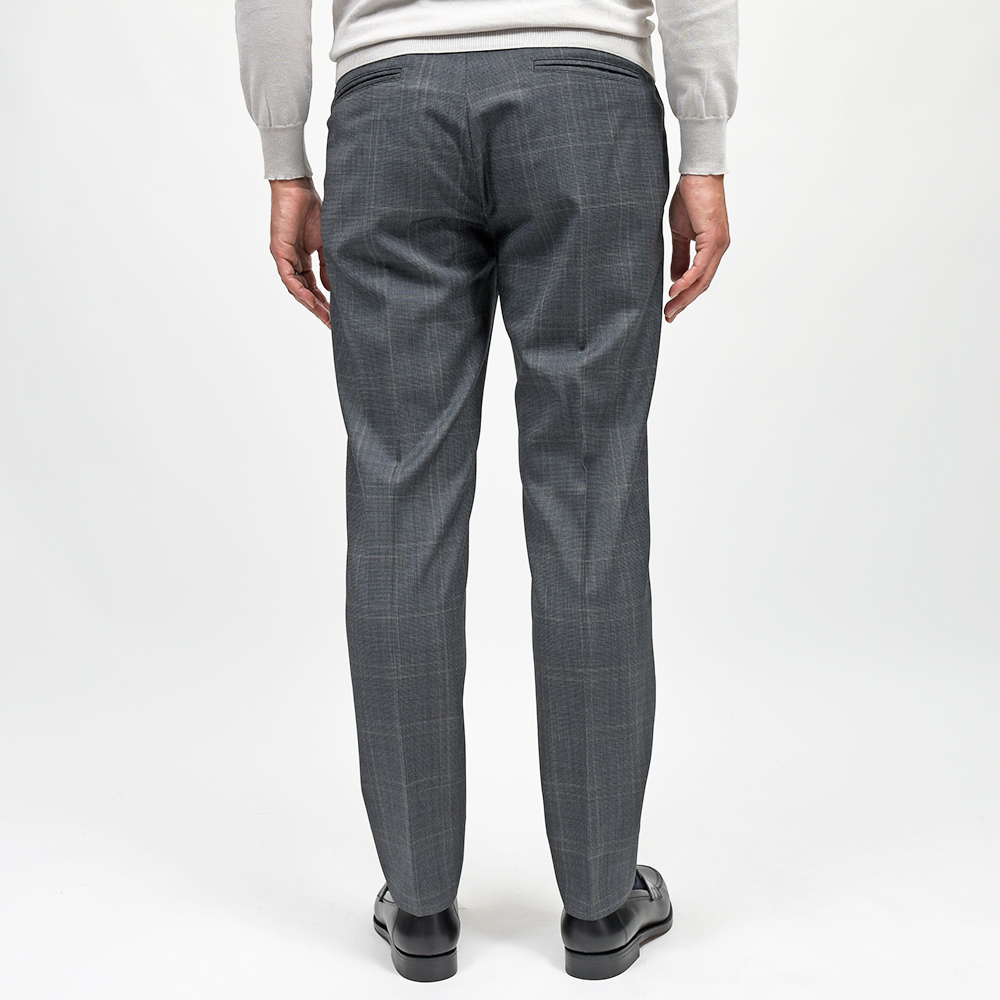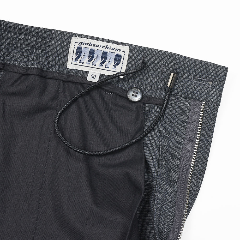 目付け255gのウールトロピカルは、薄手で軽くドライなタッチで清涼感のある穿き心地。ハウンドトゥースをベースに、ホワイト×ネイビーのシャドーチェックが入った珍しい柄は、主張が激しくなくスタイリングにすんなりと馴染んでくれます。
