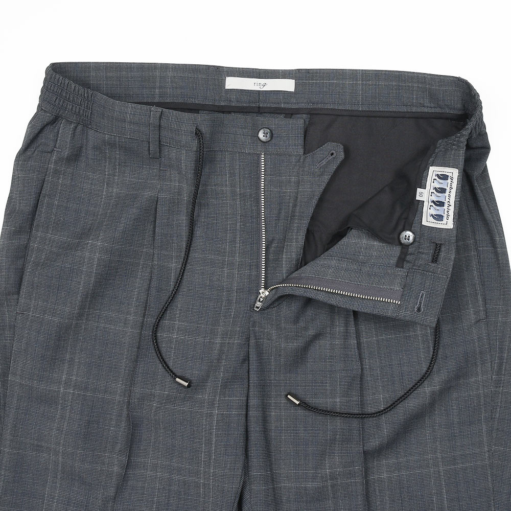爆発的ヒットを記録したring初となるgiab's ARCHIVIO×ringの別注品、その名も“ring”。モデル名を決めかねていたバイヤー陣に対して、デザイナーの中新井氏の鶴の一声により決定した感慨深い一品です。そして、2020SSシーズンから“ring”をさらにアップデートした“ring2”が登場。1プリーツ入り“MASACCIO”のベースはそのままに、ドローコードをラグジュアリーな雰囲気が漂うイントレチャートに変更。さらに、マーベルトを-0.5cm幅を狭め、股上は+0.5cm深くすることでリラックス感が増しています。膝幅+0.5cmとそれぞれハーフサイズアップし、ふくらはぎの突っ張りを軽減しました。