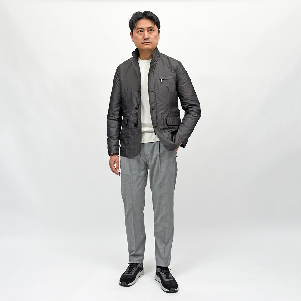 ジャケット型ブルゾンモデルの“GHIBERT(ギルバート)”は、フロントジップ付きの3つボタンジャケットのディティールを取り入れています。きれい目にもスポーティーにも姿を変える高い汎用性を発揮するライトアウターは、春のみならず、秋にも着れる実はロングシーズン使用するアイテムと言えます。また、“SHAPE MEMORY”を採用したKMは、形状安定ポリエステル生地に撥水加工を施し、シワや汚れの付着を防ぎます。