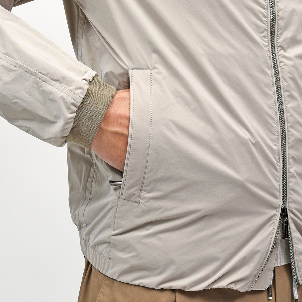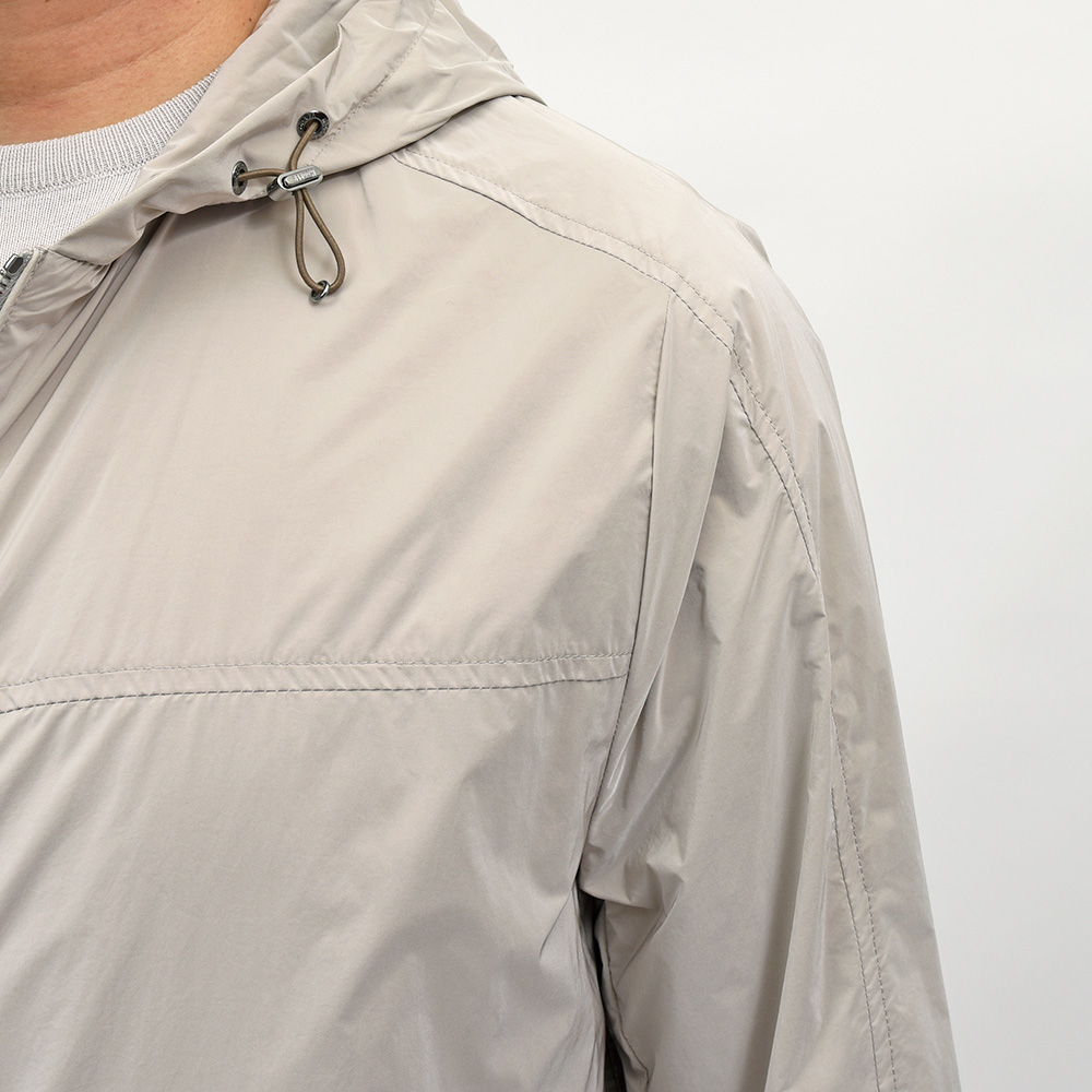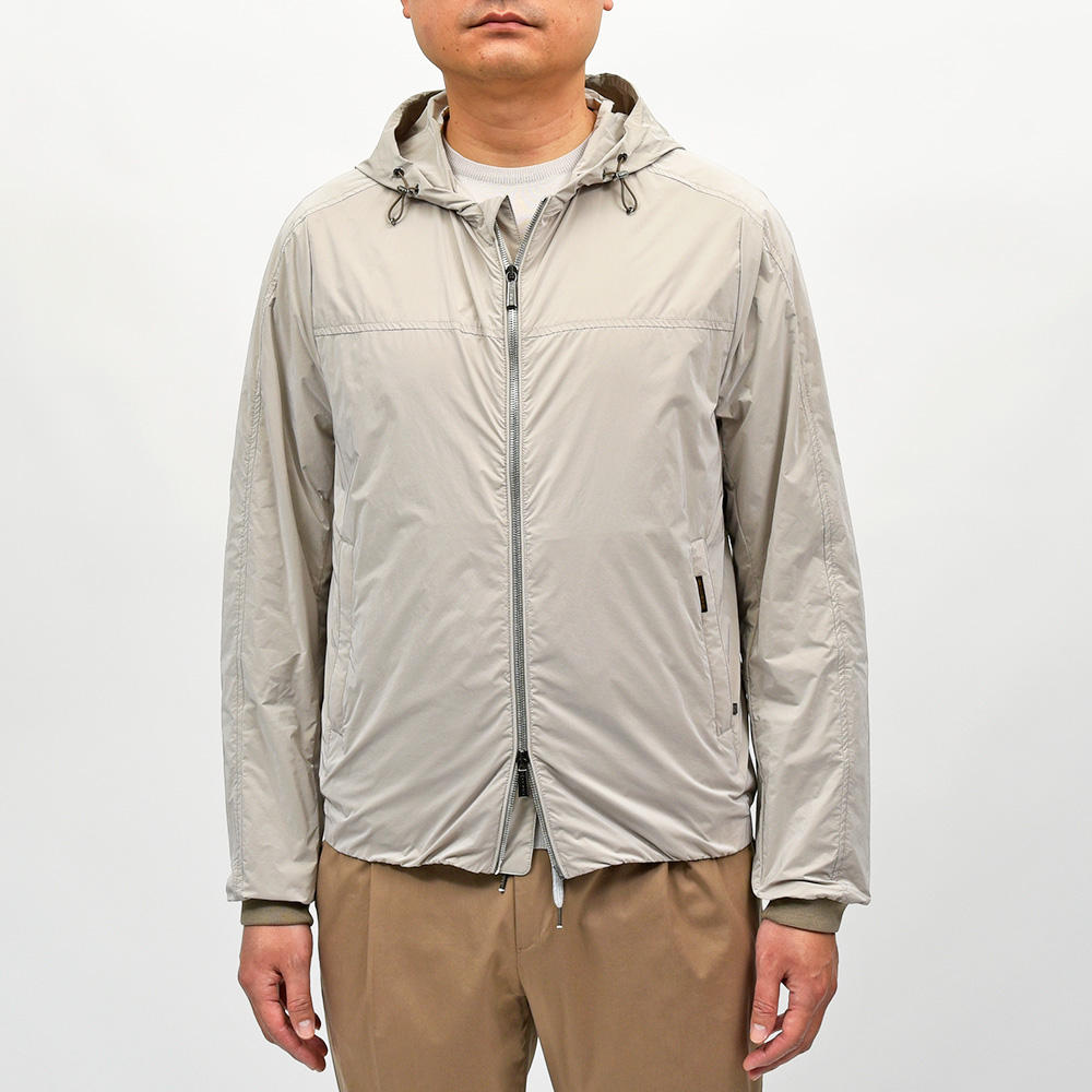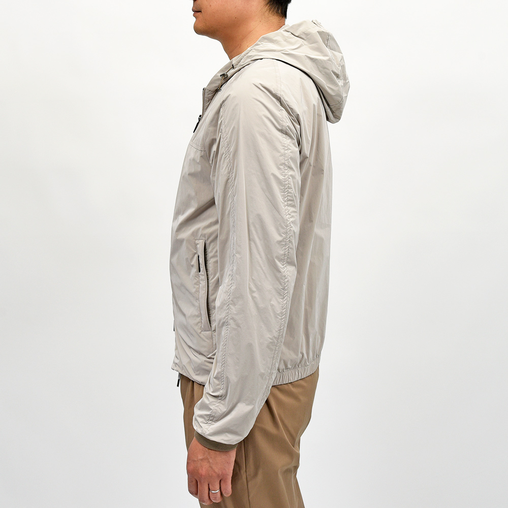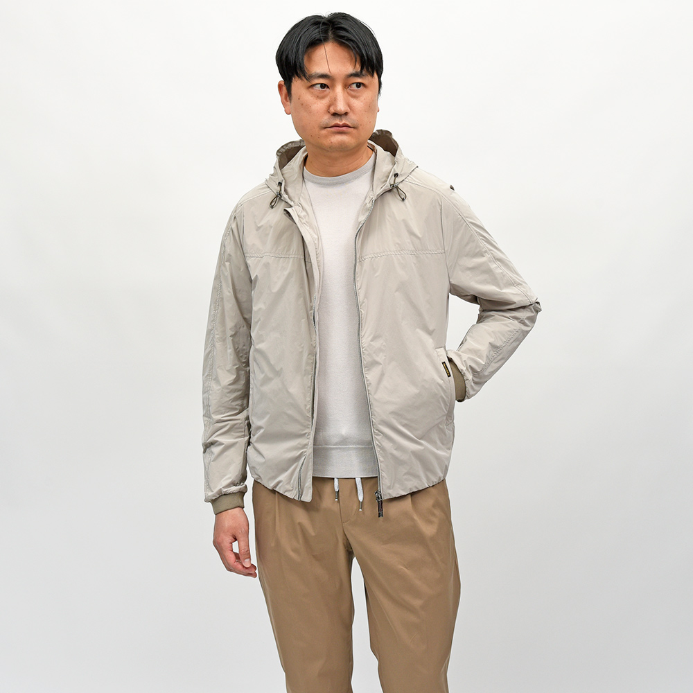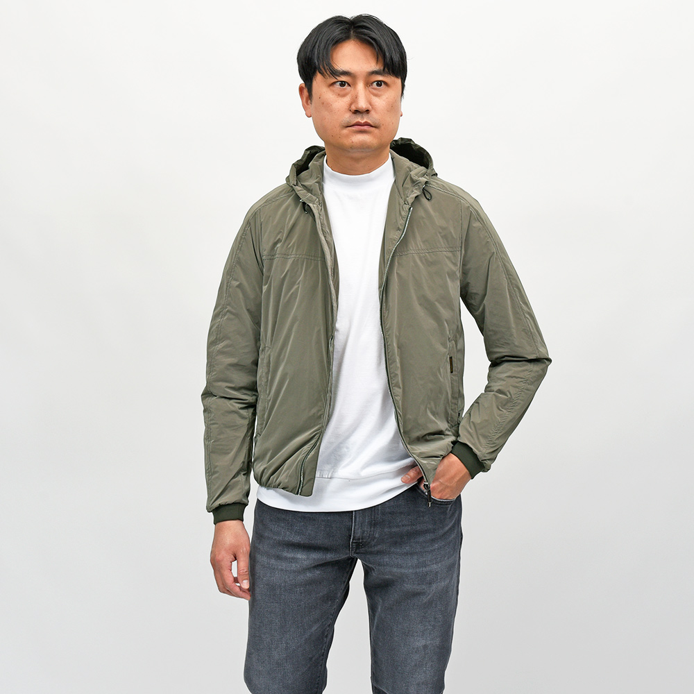 ナイロン×ポリエステルの軽量でマットな光沢感が特徴的な“OS”ファブリックを使用したこちらは、フーデット仕様のショートブルゾンモデル“ALBORI(アルボリ)”。デニムやチノパンなどに合わせたカジュアルスタイルはもちろん、ウールパンツでキレイ目な合わせや、スウェット素材と合わせてスポーティーにもこなせる汎用性が魅力です。ライトアウターは春のみならず、秋にも着れる実はロングシーズン活躍してくれるアイテムです。