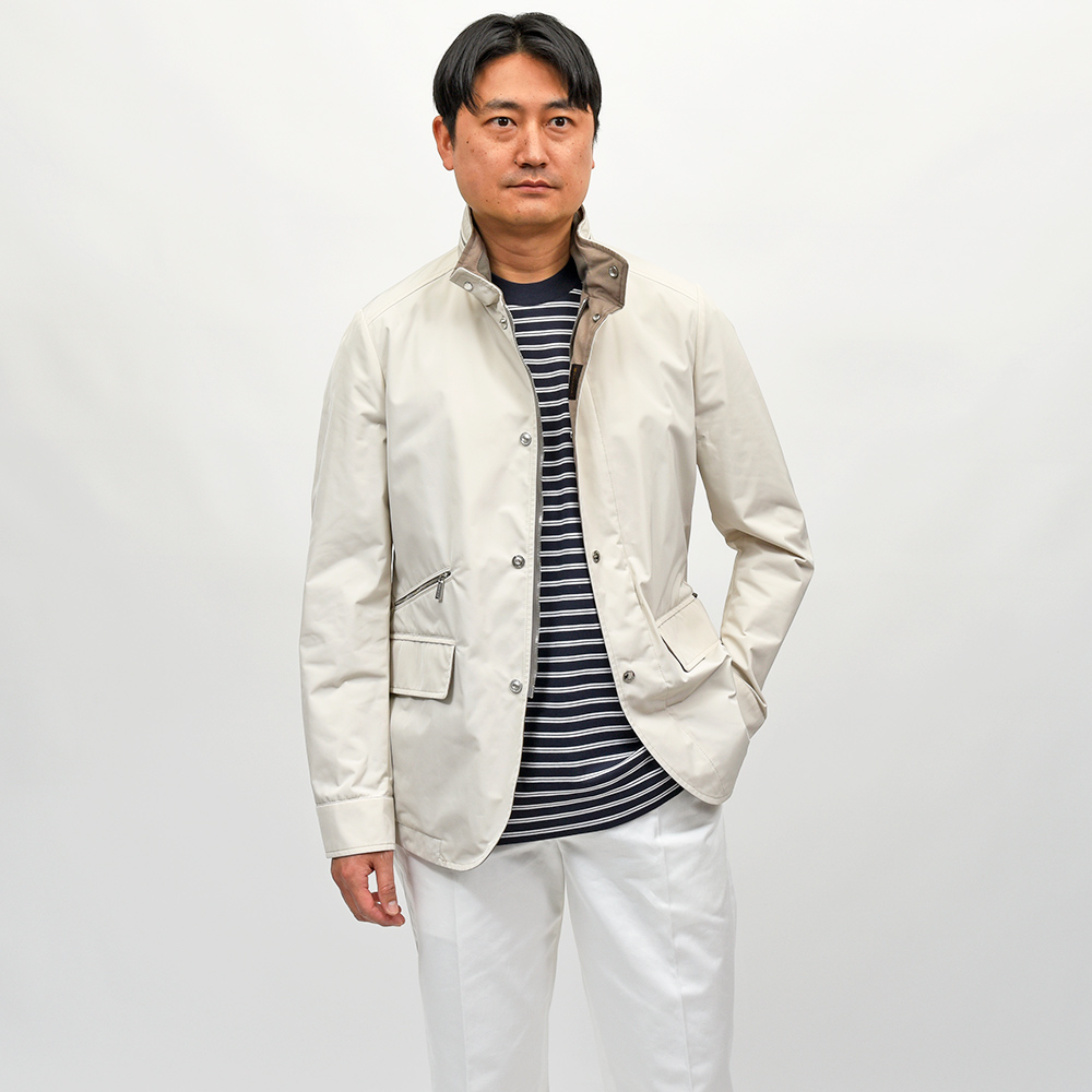 特注のスナップボタン、ファスナーやホーン釦などの拘りに、裏地のナイロン素材の美しさ加えてパイピング処理を施した丁寧な仕上げ。MooRER(ムーレー)のアウターに死角はありません。