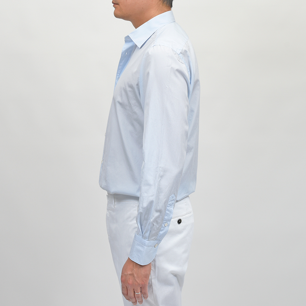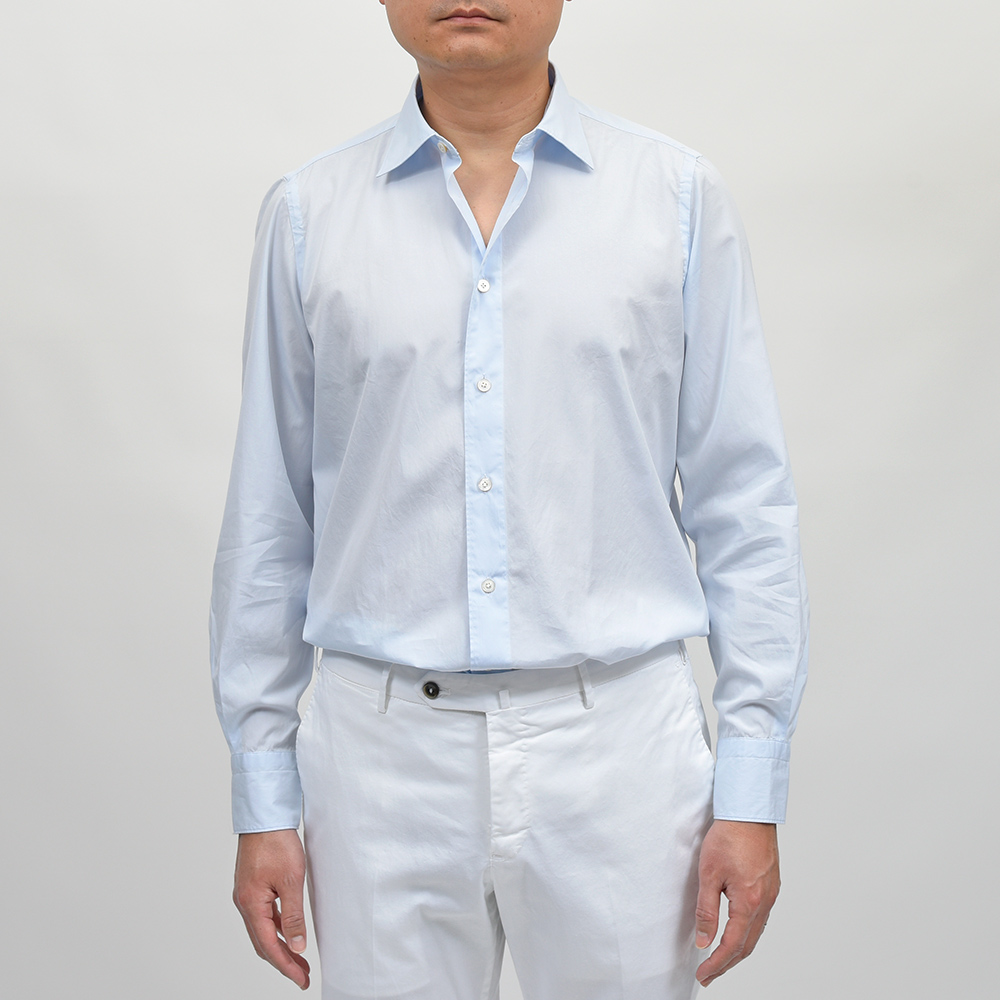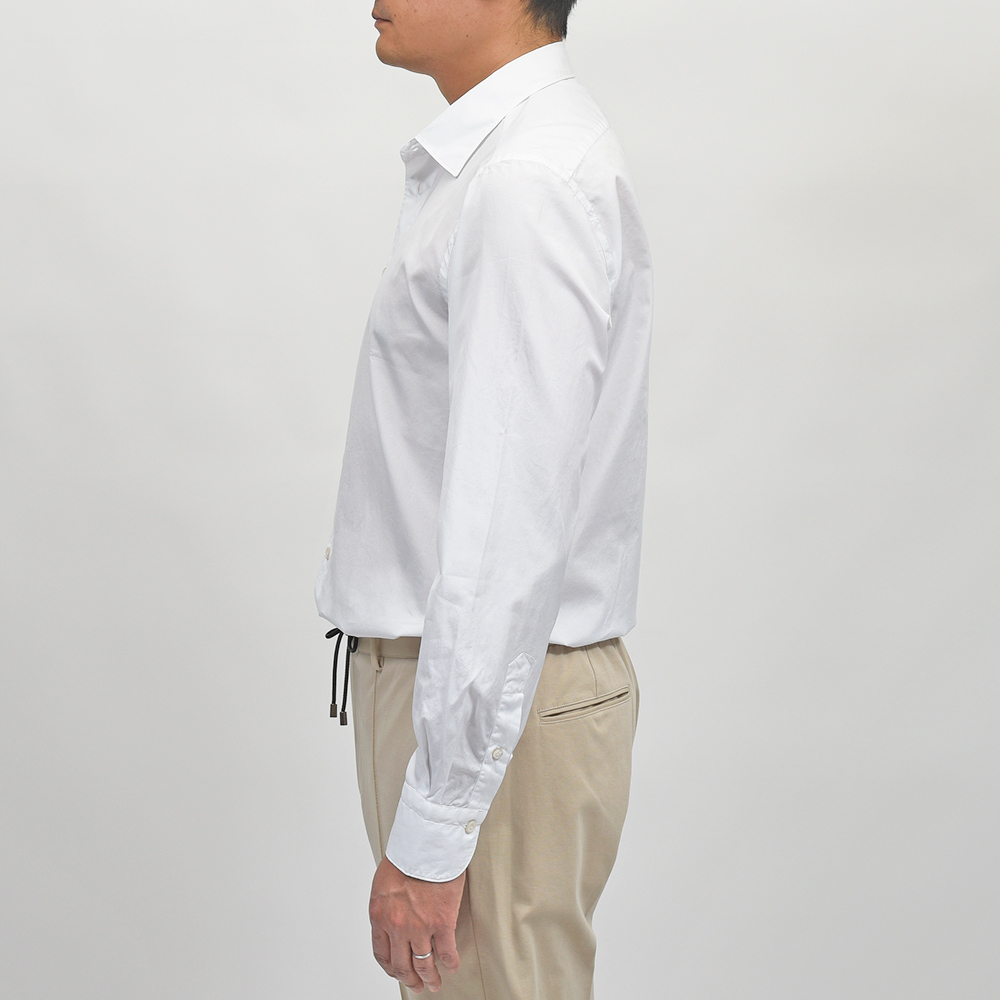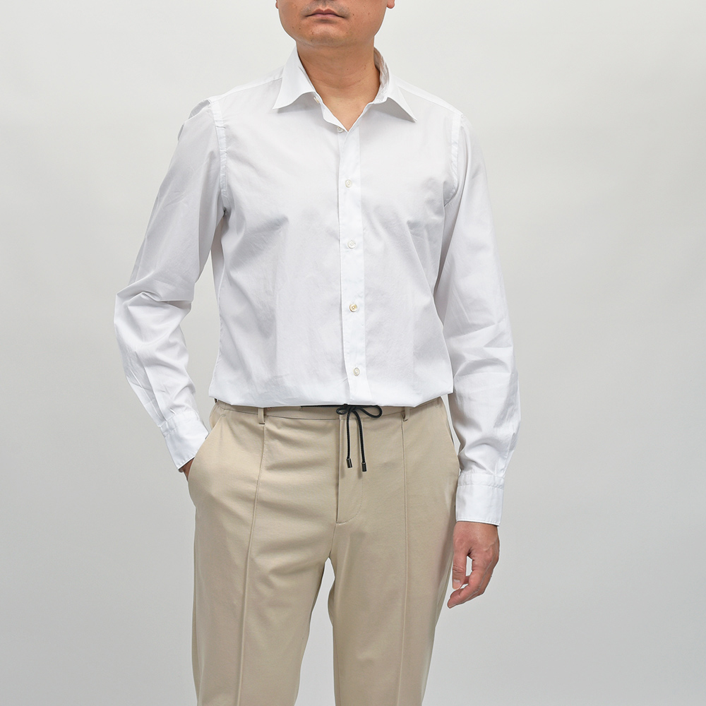 ドレスシャツにも使用されるクオリティーの、120/2(120番手双糸)コットンポプリンを採用。目付け160gのポプリンは、ライトなウエイトに程よいハリ感、滑らかさと美しい艶感を持ち合わせた上質な一品です。