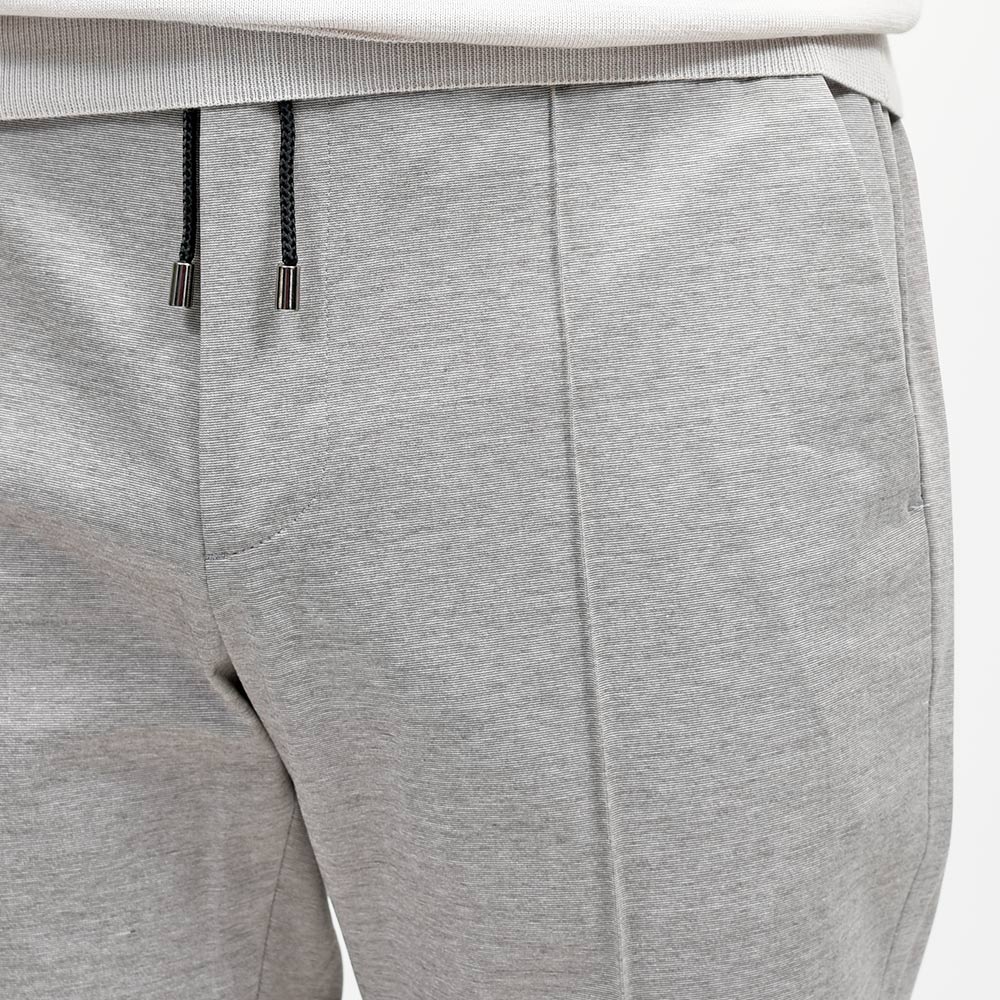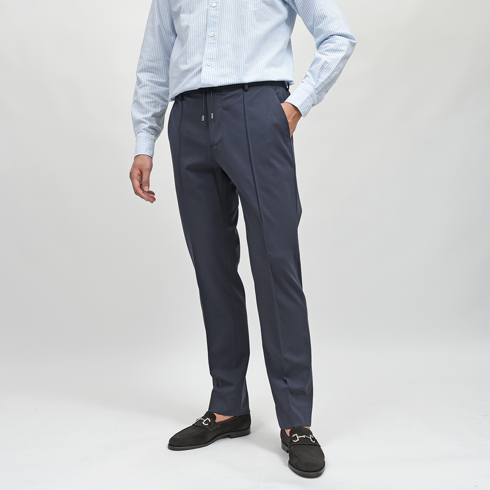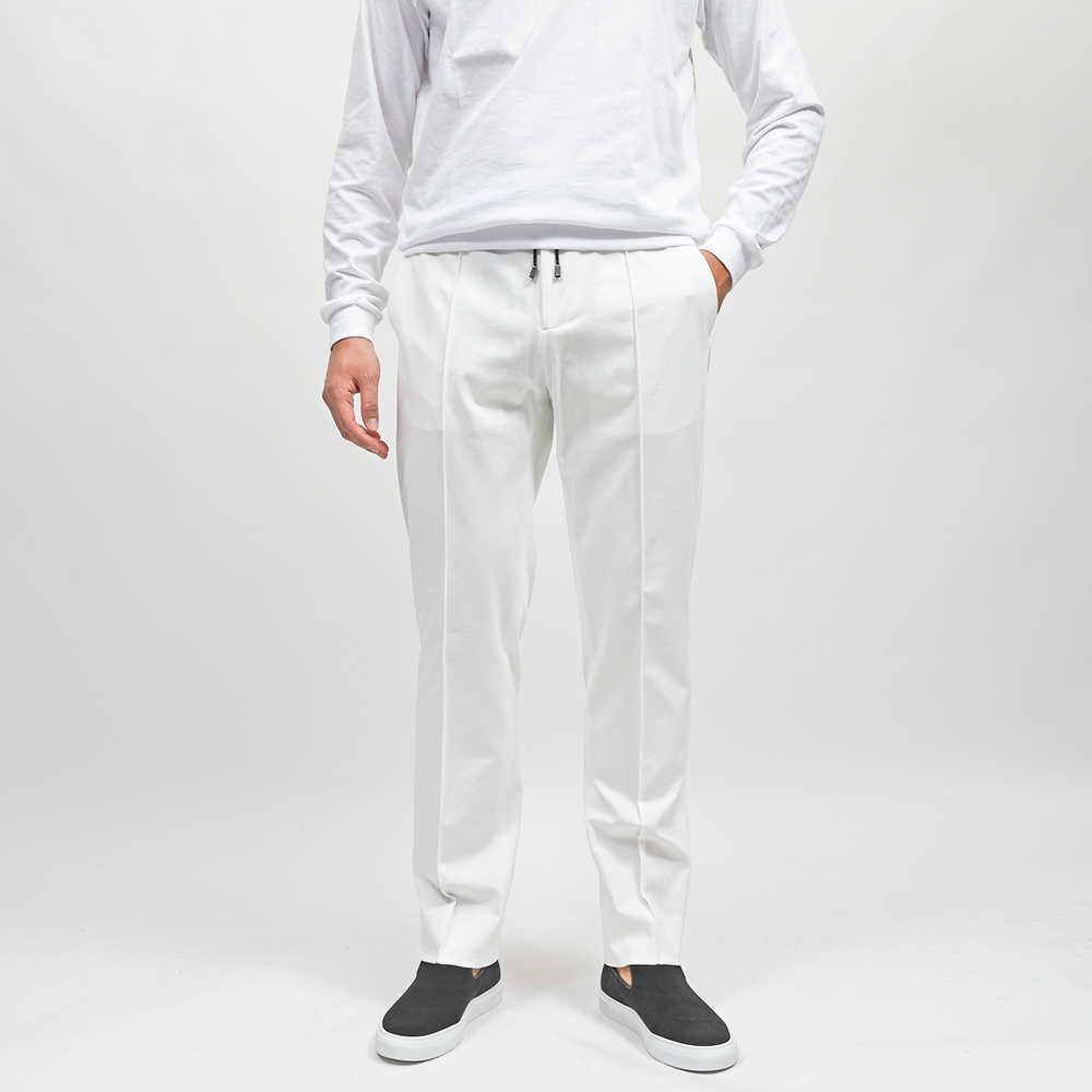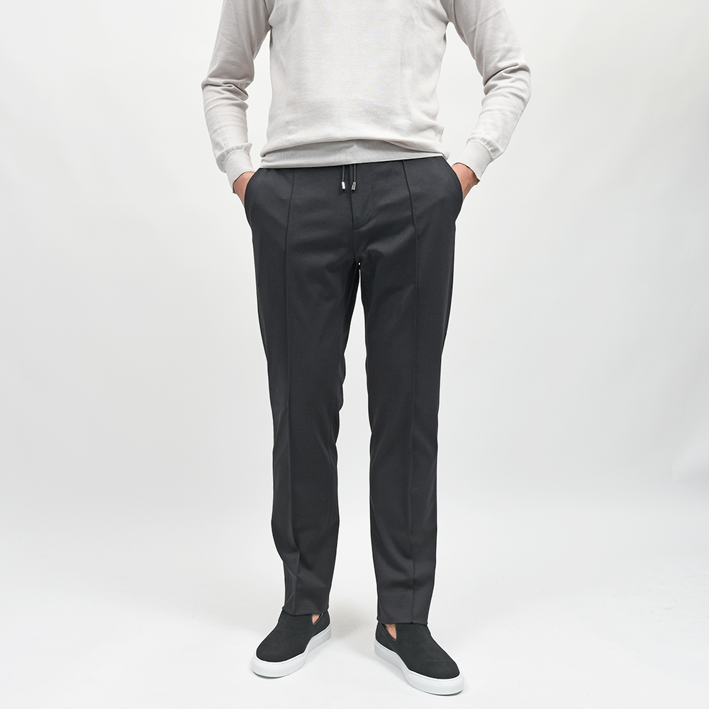 MASACCIO/3GはMASACCIOの特徴である永久クリースや、内側に隠せるドローコードなどのディティールを継承しつつも、現代的なフィッティングに再解釈したモデルになります。こちらの別注モデルでは、通常ウエストのサイドのみに施されたゴムを、後半身がシャーリング仕様となりより高い伸縮性を持たせています。
