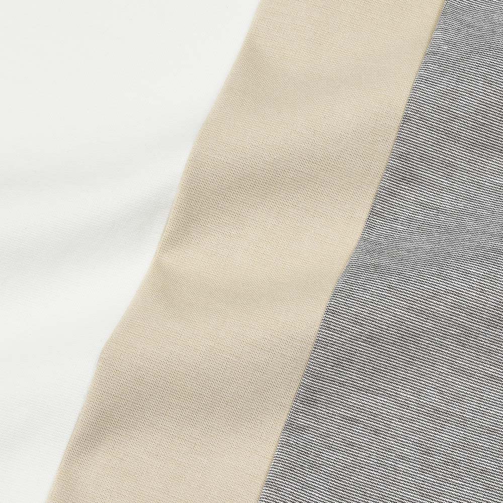 今や新定番としてその地位を確立している“WASHABLE JERSEY”。春夏向けジャージー素材の定番であった“STANDARD SUMMER JERSEY”の目付け530gに対して、こちらは目付け350gと大幅な軽量化に成功。真夏でも着用できるライトな生地感のジャージー素材として、春夏秋の3シーズンで着用できる高い汎用性を発揮してくれます。