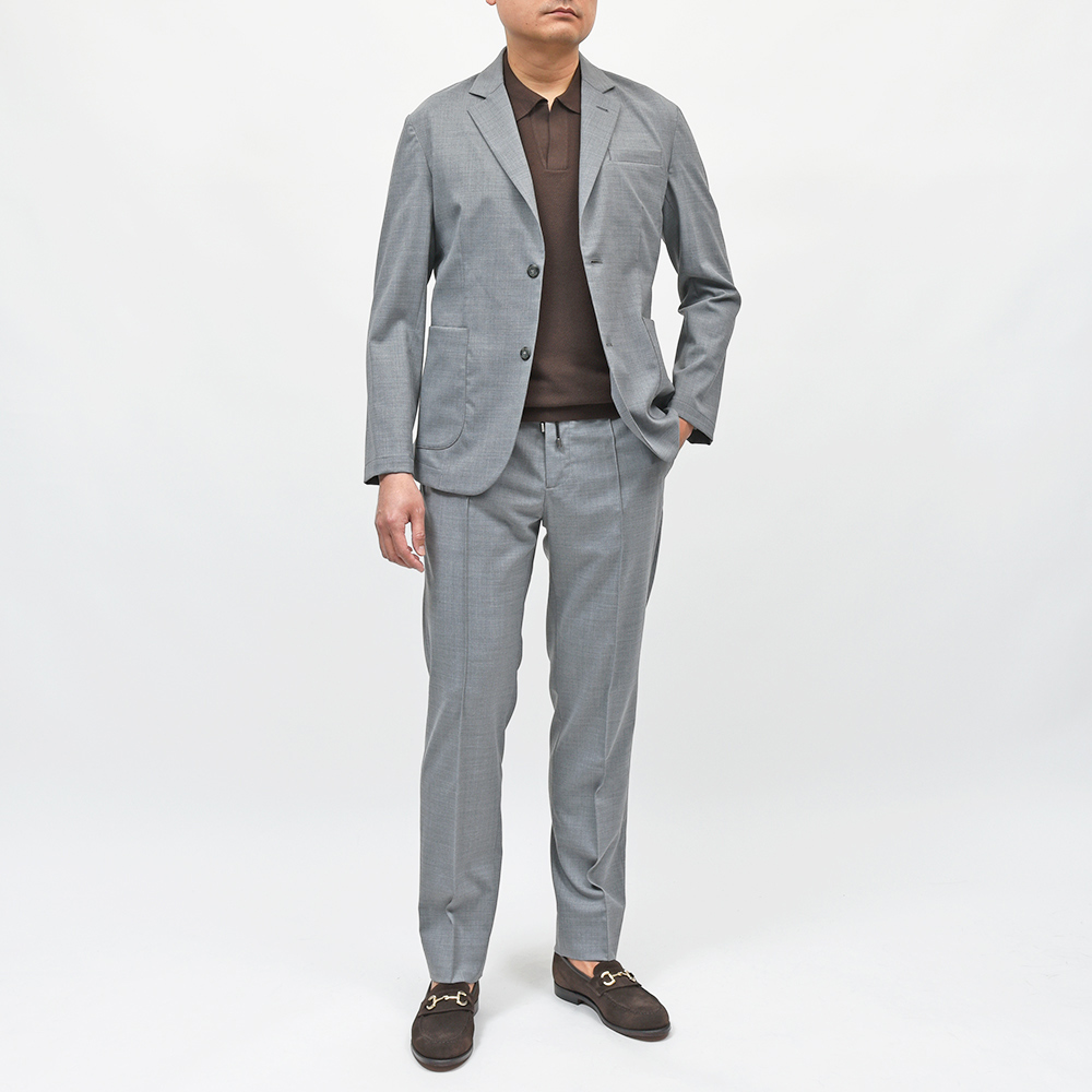 ウール見えするテクノウールだからこそ、ジャケット単体はもちろんセットアップでも活躍してくれる頼りになる名品です。