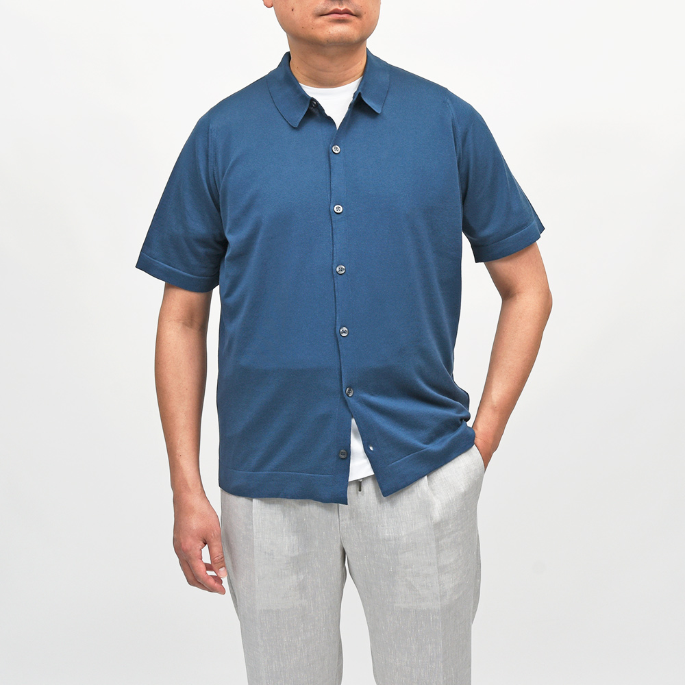 モデル“FOLKE”はJOHN SMEDLEYでは定番の半袖ニットシャツになります。ショートスリーブのニットシャツは、ボタンを留めてポロシャツのような着こなしや、ボタンを開けてカットソーの上に羽織ったりと、様々な着こなしで夏を彩る一枚となっています。