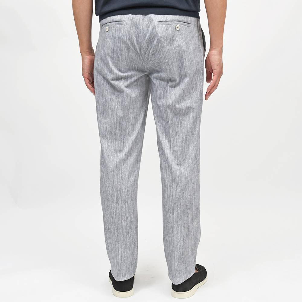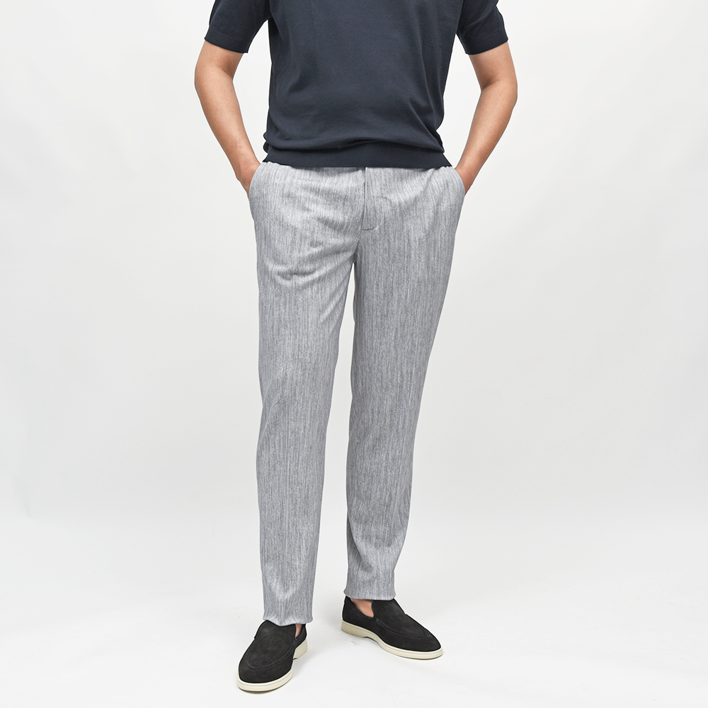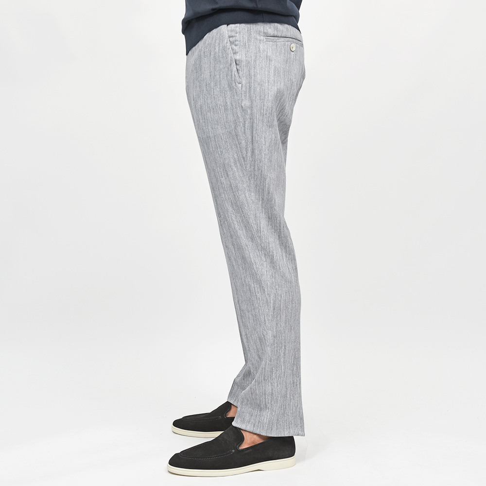 こちらはベルトループ付きのノープリーツスラックス。定番のモデルに比べて股上や渡りを少しだけ大きくし、テーパードを少し緩やかにしたモデルになります。