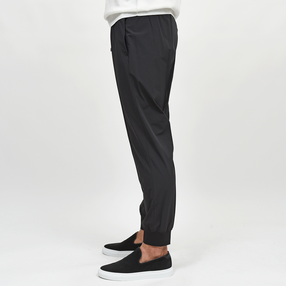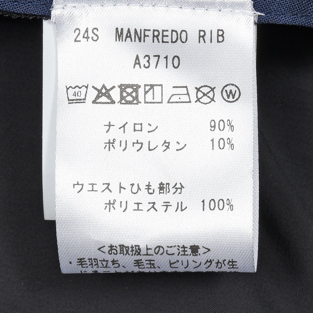 フルシャーリングにドローコードを備え付けたモデル“MANFREDO(マンフレッド)”。腰回りから膝にかけてゆとりのあるリラックスしたシルエットに、膝から下は緩めにかけられたテーパードが大人の上品さを持ちます。こちらはMANFREDOをベースに、裾口をリブ仕様に変更し、また前後にココンチの代名詞とも言える永久クリースを施しています。