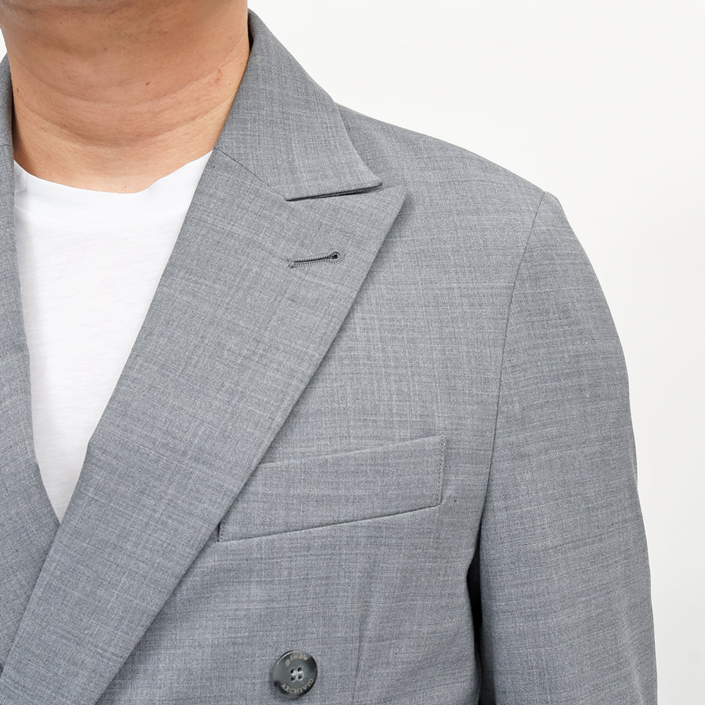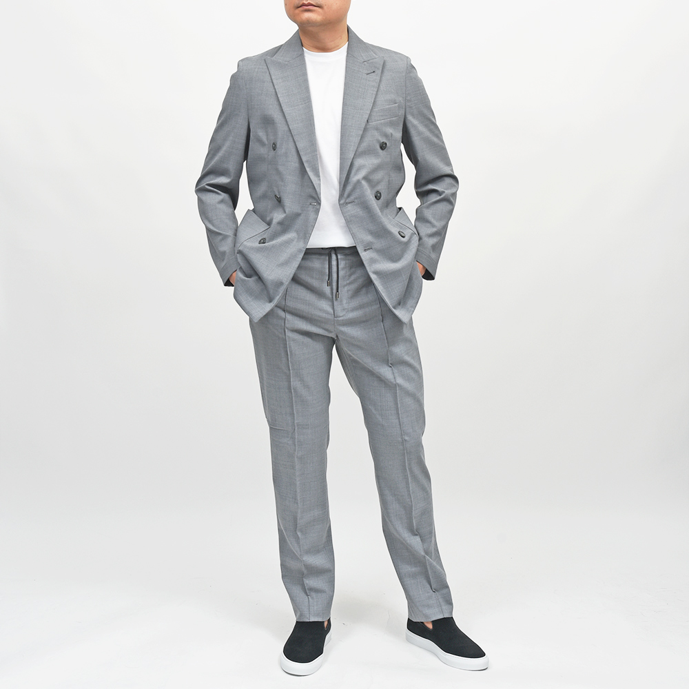 シンプルなコーディネイトでもダブルブレストのジャケットであれば、サマになるスタイルを作り上げてくれます。