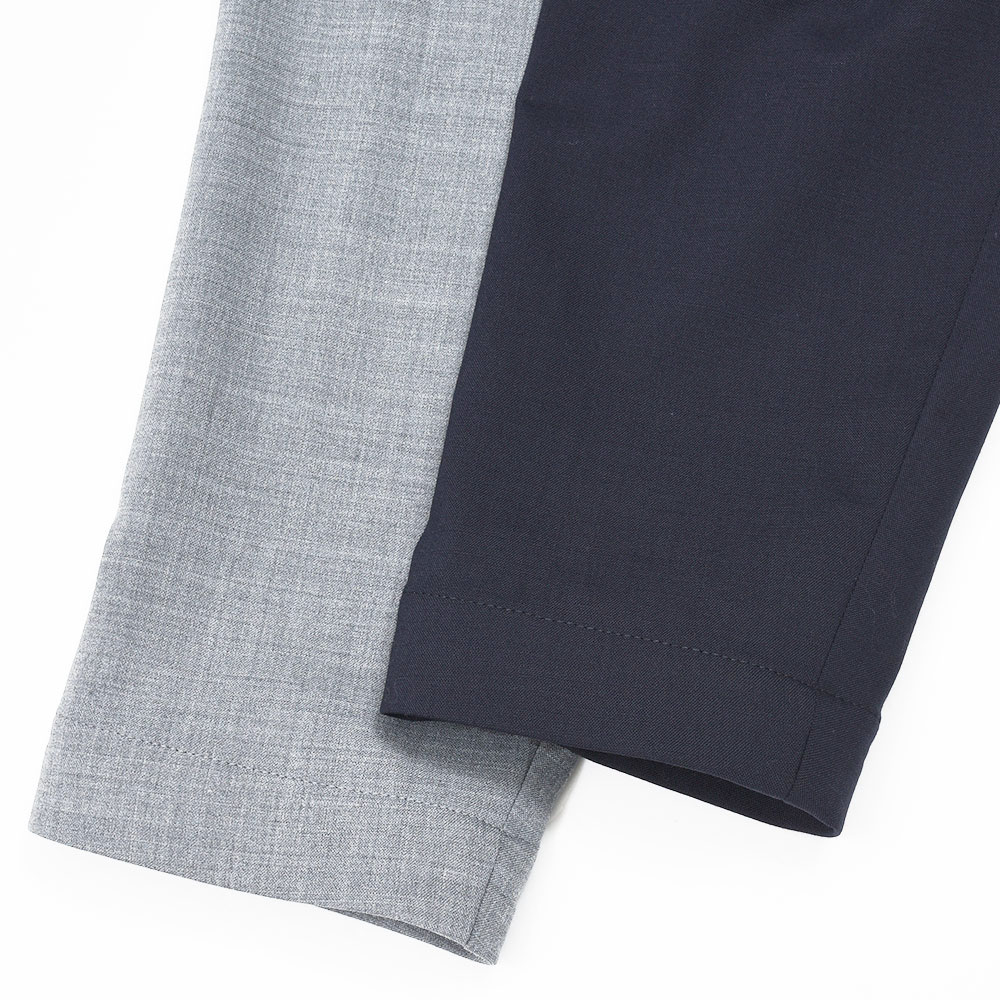 スタンダードジャージーに並ぶ、ココンチの定番ファブリックの一つである“テクノウール”。目付け250gのウールトロピカルで、目付自体も少し軽いものになっています。薄手で軽くドライなタッチはそのままに、上品な表情でありながらも自宅で洗濯が可能なウォッシャブル生地。また、シワにもなりにくく、ストレッチ性に富んだコンフォートなオリジナルファブリックになります。オフはもちろん、オンタイムでも活躍できる抜群の汎用性を発揮してくれます。