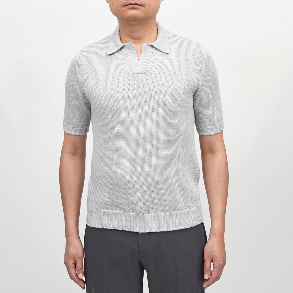 Settefili Cashmereを代表するファブリックの一つである、リネン×コットン素材を使用したこちら。リネンの程よいツヤ感を持ちながらも柔らかく、コットンの質感が強い物になります。地肌に着てもリネン特有のザラザラした感触は皆無。シンプルな着こなしであっても、Settefili Cashmereらしい上品まムードを醸し出してくれます。