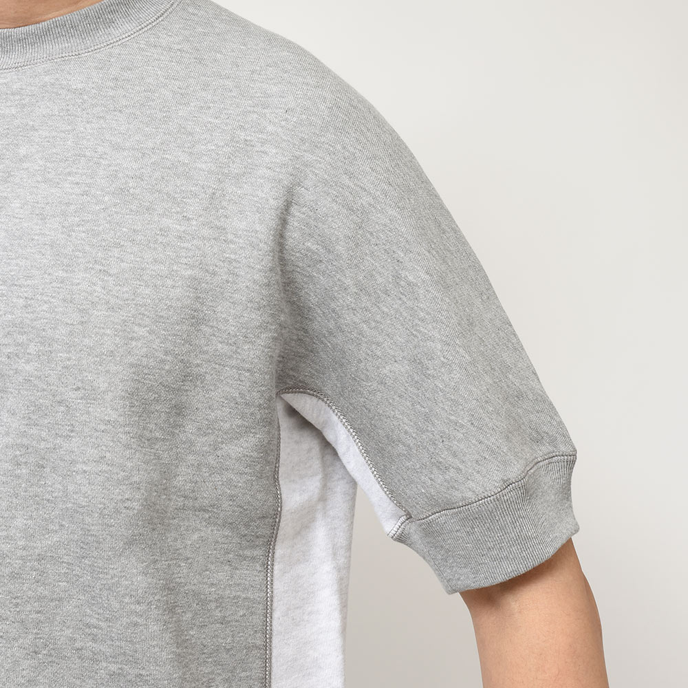 SCYE BASICSを代表するアイテムの一つである吊り編みの裏毛スウェット素材。非常に希少な吊り編み機を使用し、1時間で1mという低速で編むことで糸に余計なテンションがかからず、手編みに近い風合いに仕上がります。また、フロントに継ぎ目のない独自のカッティングは、袖付けを背面にする事で得られる可動域と着心地を得られるフリーダムスリーブ。他のスウェットでは間違いなく味わうことのできない、至極の一品と言っても過言ではありません。