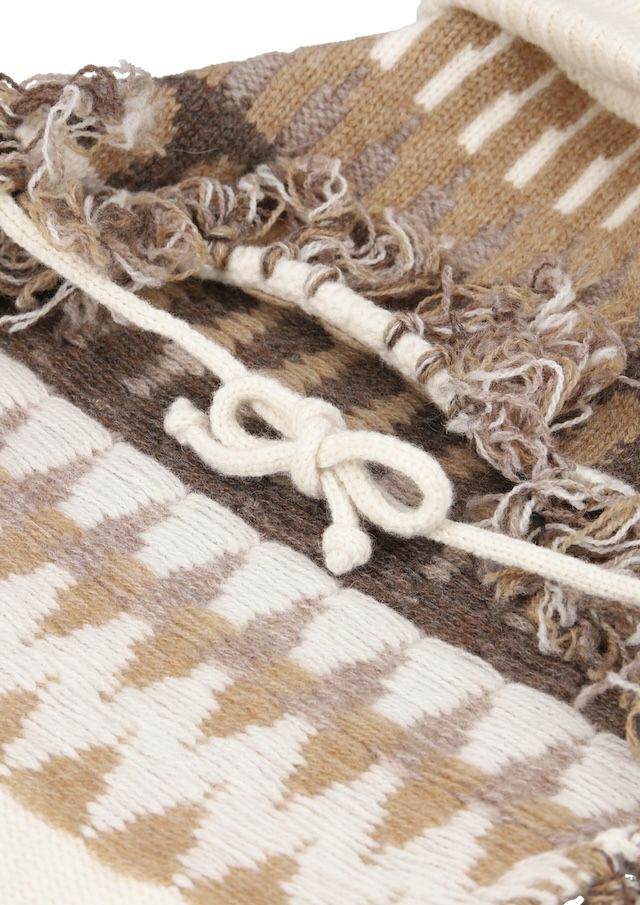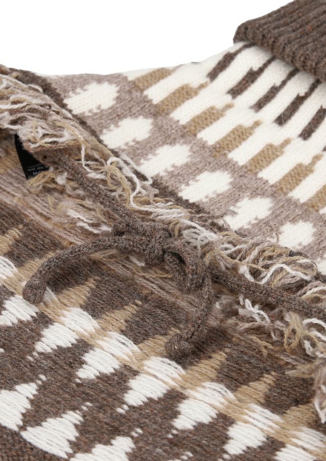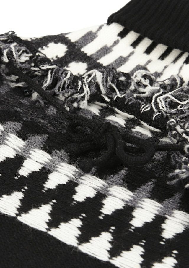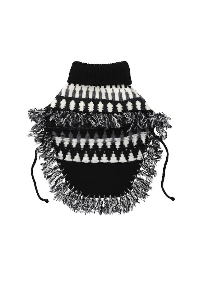 1PIU1UGUALE3 DOGGYよりノルディック柄のタートルネックニットの登場です。適度な厚さのダブルジャガード編みで、薄すぎず厚すぎない絶妙な編地が特徴です。使用している糸は、18.5マイクロンのエクストラファインメリノウールと毛足の長いエコファーナイロンの2種類。これらの糸をジャガード編みにすることで、杢調の独特な風合いが生まれます。メリノウールは非常に柔らかく、肌触りが良いだけでなく、除湿・調温・防臭効果にも優れています。さらに、ニット製品で最も高品質とされる「リンキング縫製」を採用しており、縫い代がすっきりとしゴロつきがありません。