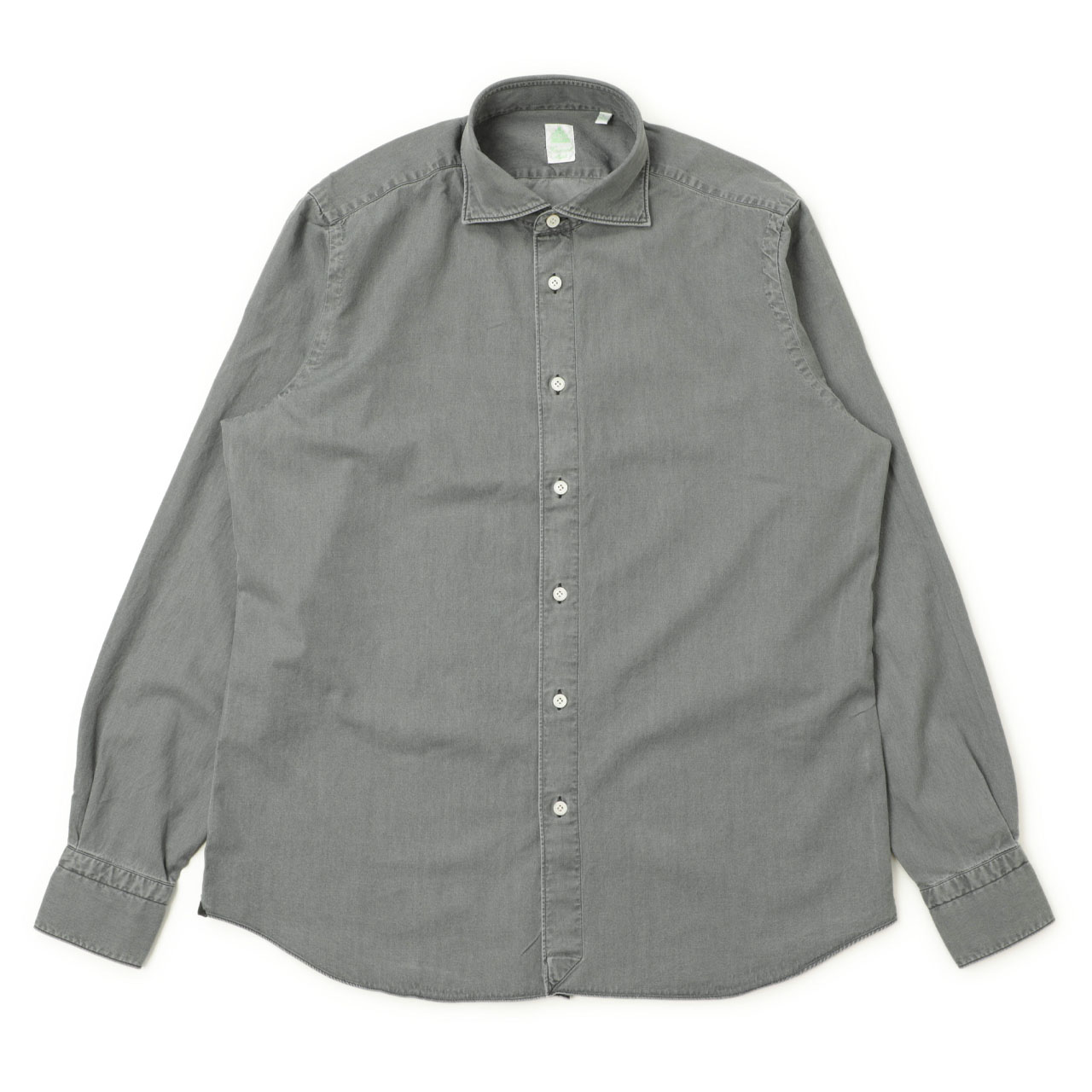 カジュアルラインは洗いのかかったナチュラルな風合いが特徴で、アームホール、ボタン、ガゼット部分は熟練した職人の手によるハンドメイド。ドレスラインはさらにハンドポイントが増え、ハンドメイドならではの柔らかな風合いとストレッチのような着心地が、90年以上の歴史を誇る老舗シャツメーカーフィナモレの大きな特徴です。