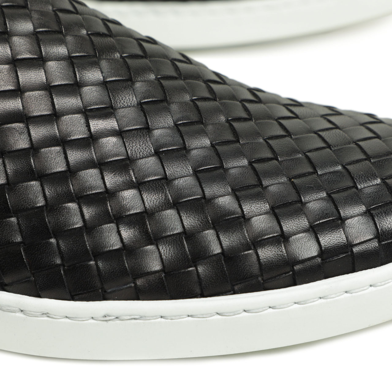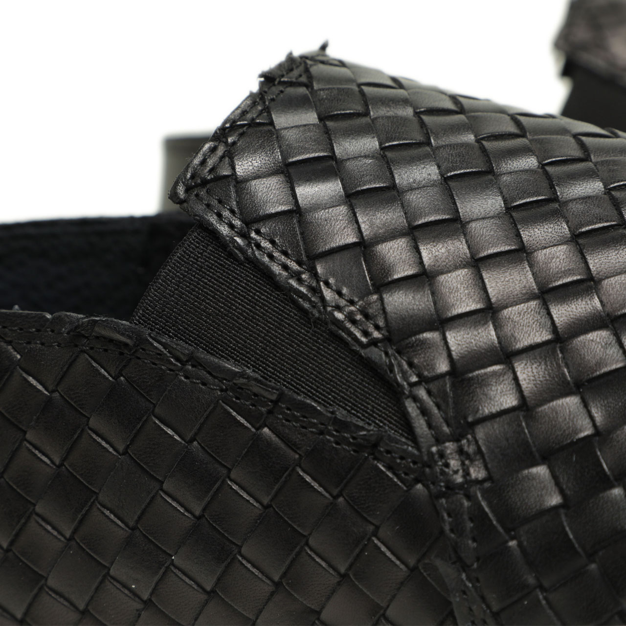 アッパーは綺麗に本革で編み込まれたイントレチャート。これにより上品なビジュアルに仕上がった一足。