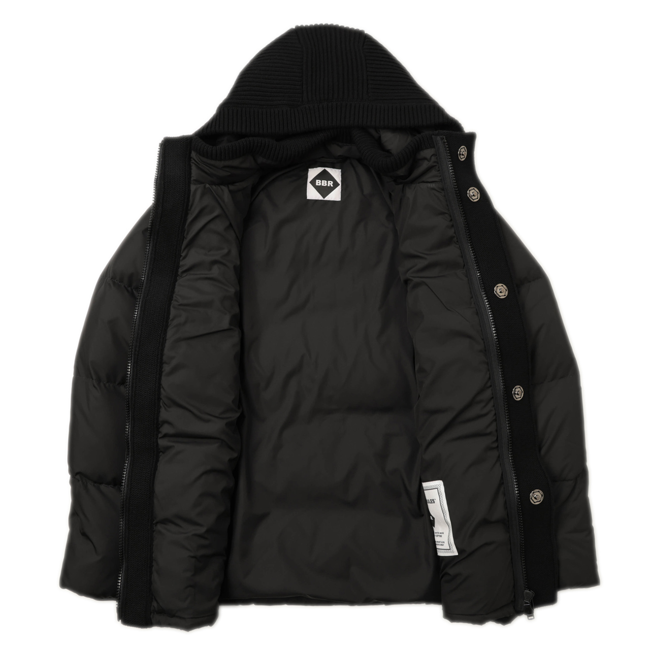 BARKB-RULES=通称BBR(ビービーアール)はニットダッフルで一世を風靡「BARK」のフィロソフィーを継承したブランド。よりストリート色を強くし、ダウン×ニット×ダッフルという素材でこの秋冬新作を提案しています。