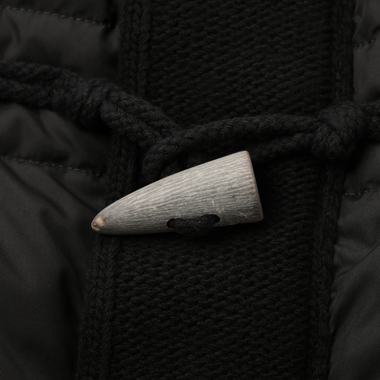 フロントはもちろんダッフル?コートのトグルの意匠を採用しております。天然水牛の角を使用しておりますので、1点1点異なる表情であることもポイント。