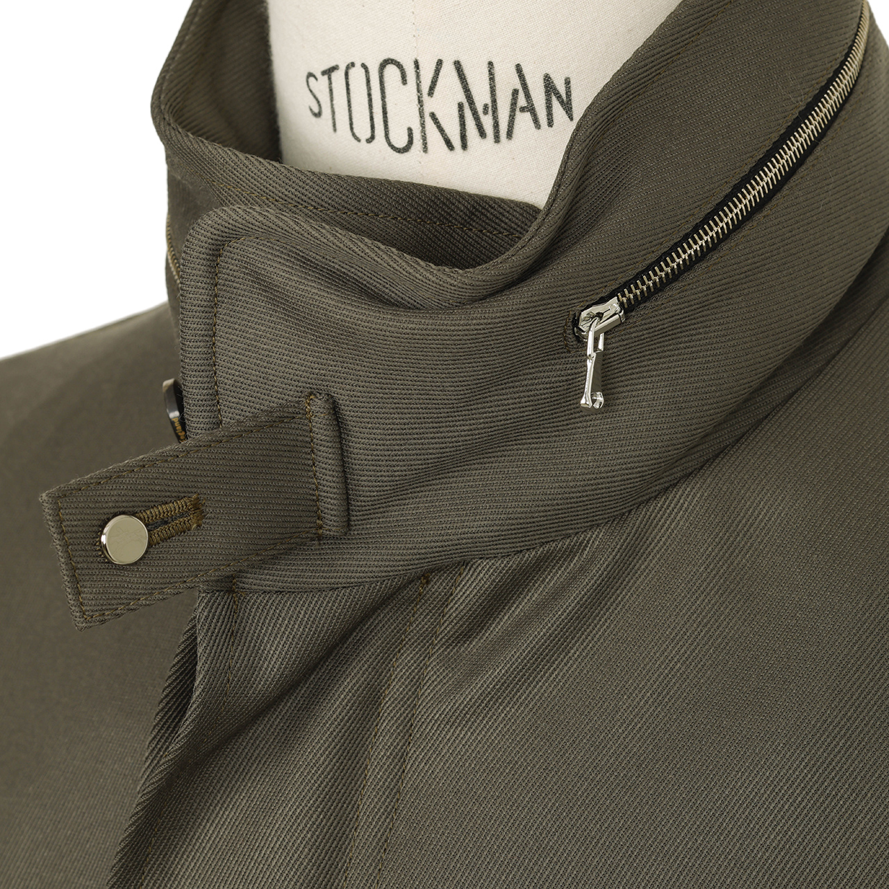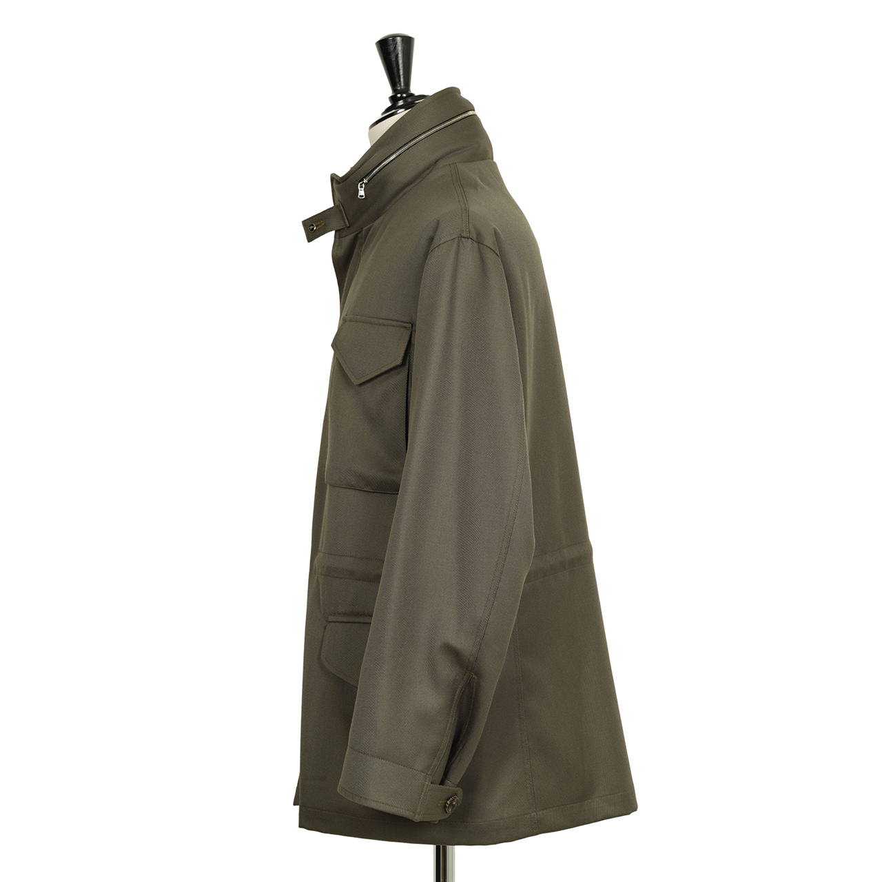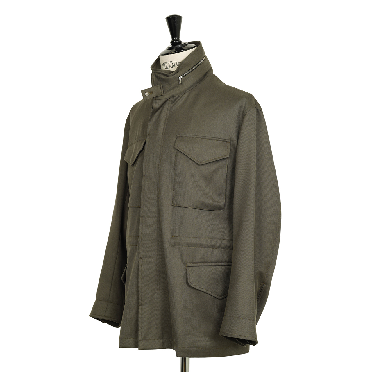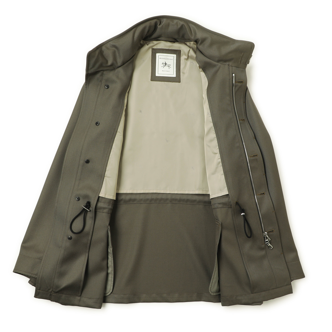 フードが内蔵されたスタンドからーや腰周りのドローコードなど、ディテールはオリジナルのM-65を踏襲していますが、上質な生地使いによって生まれる光沢やドレープなど、実に高級感のある仕上がりになっています。