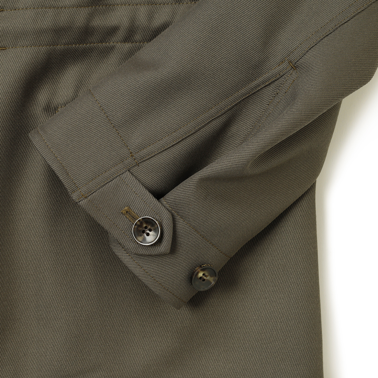 控えめな光沢のあるキャバリーツイルは、見るからに上品な佇まい。誰もが納得のゆく、英国が誇る老舗のDNAを引き継ぐクオリティです。