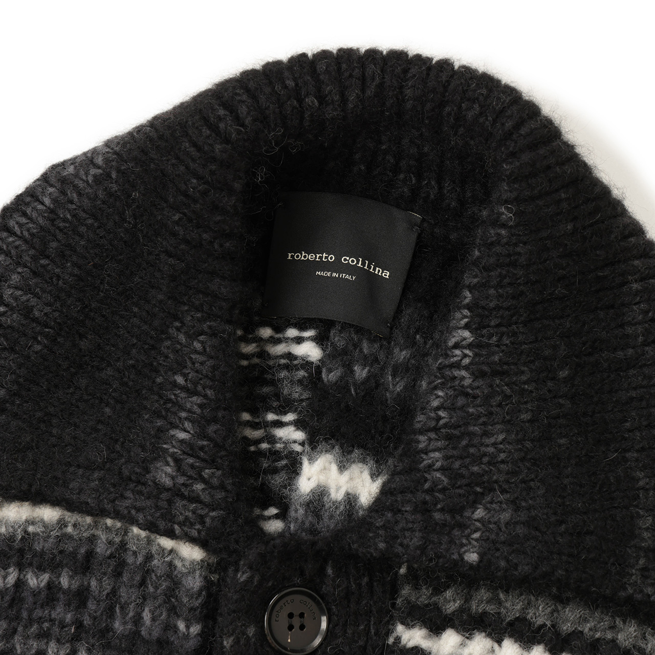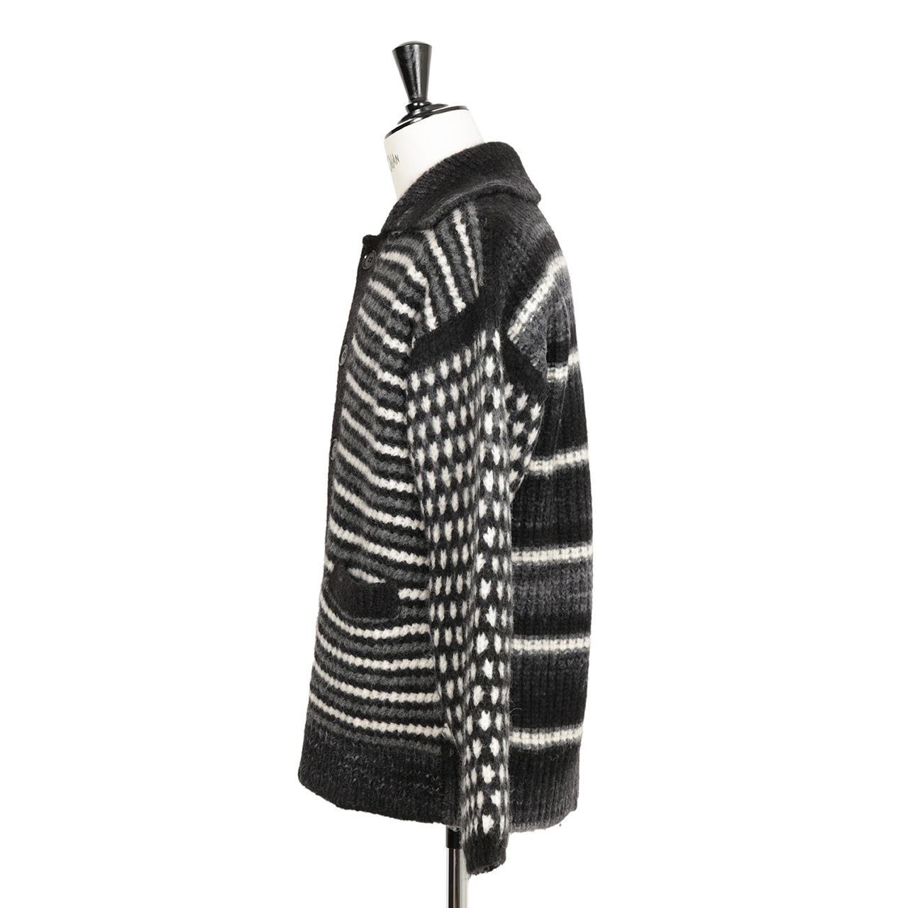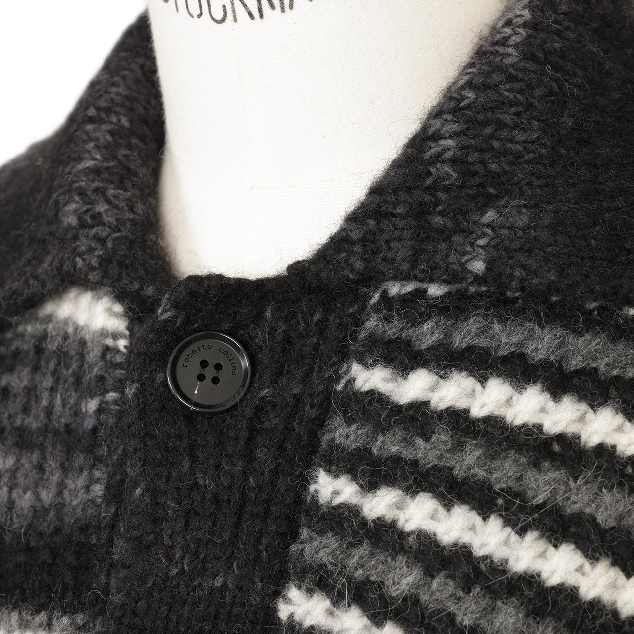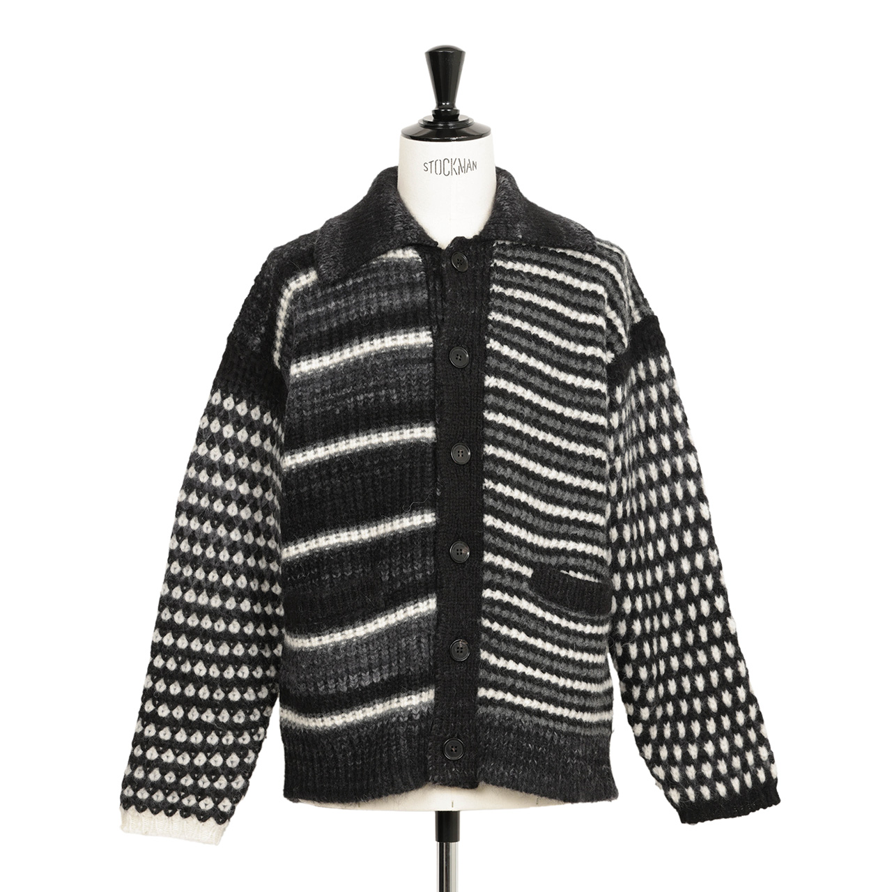 ロベルト コリーナ / ミックスステッチ ミドルゲージ ニット カーディガン / 253M31101 / ブラック×グレー