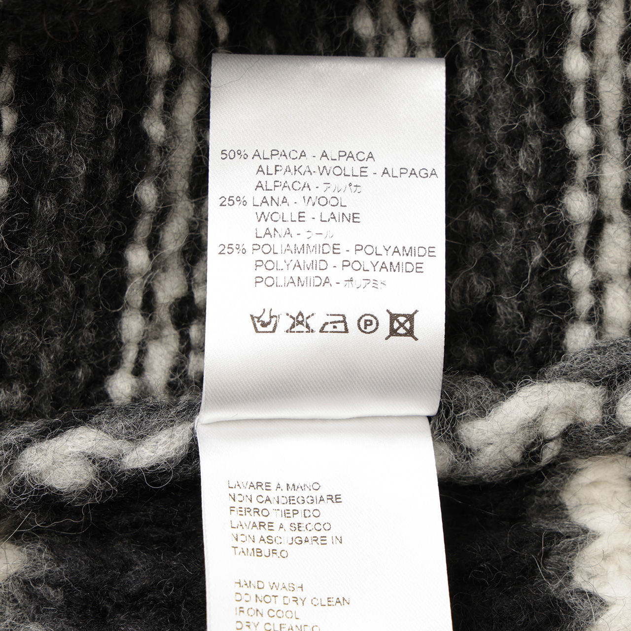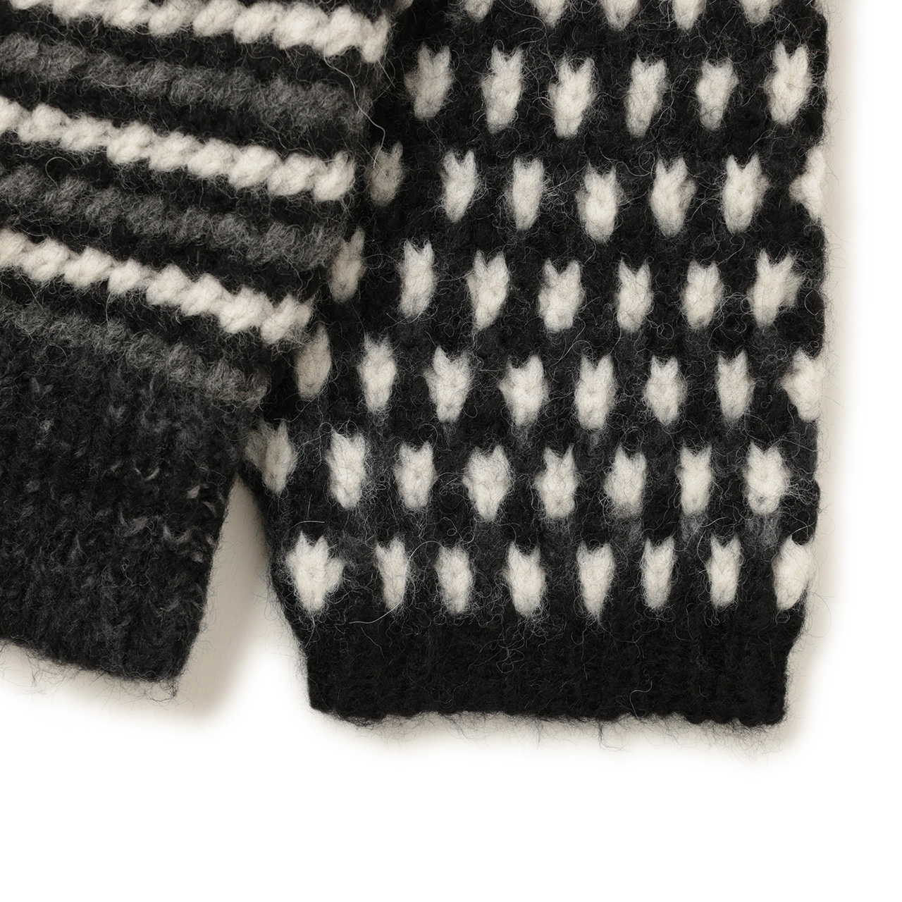 素材はウールを中心に、アルパカ、ナイロンを混紡しました。柄の部分にアルパカニットらしい起毛感、毛足の長さがあり、秋冬らしい暖かみのある表情に。