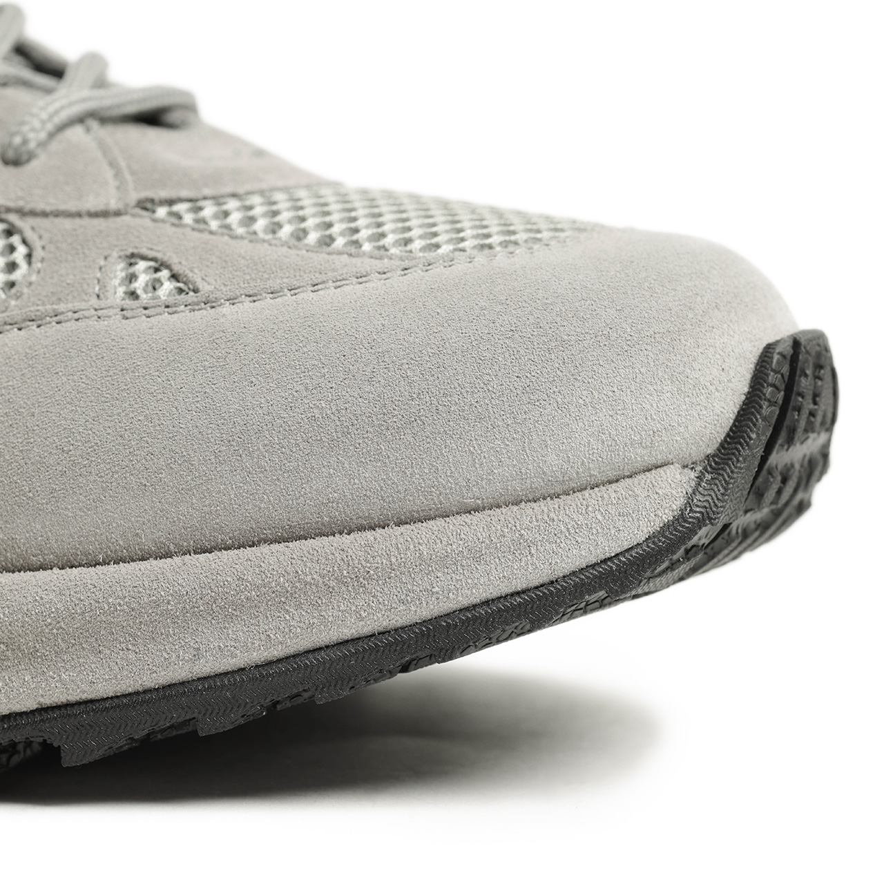 グレーカラーで統一されたアッパーはモノトーン、モードなスタイルにも合わせていただきやすいですし、グレーがアイコンカラーのアメリカブランドの様にスポーティスタイル、カジュアルスタイルにもあわせていただけますので、様々なテイスト、スタイリングにハマる一足です。