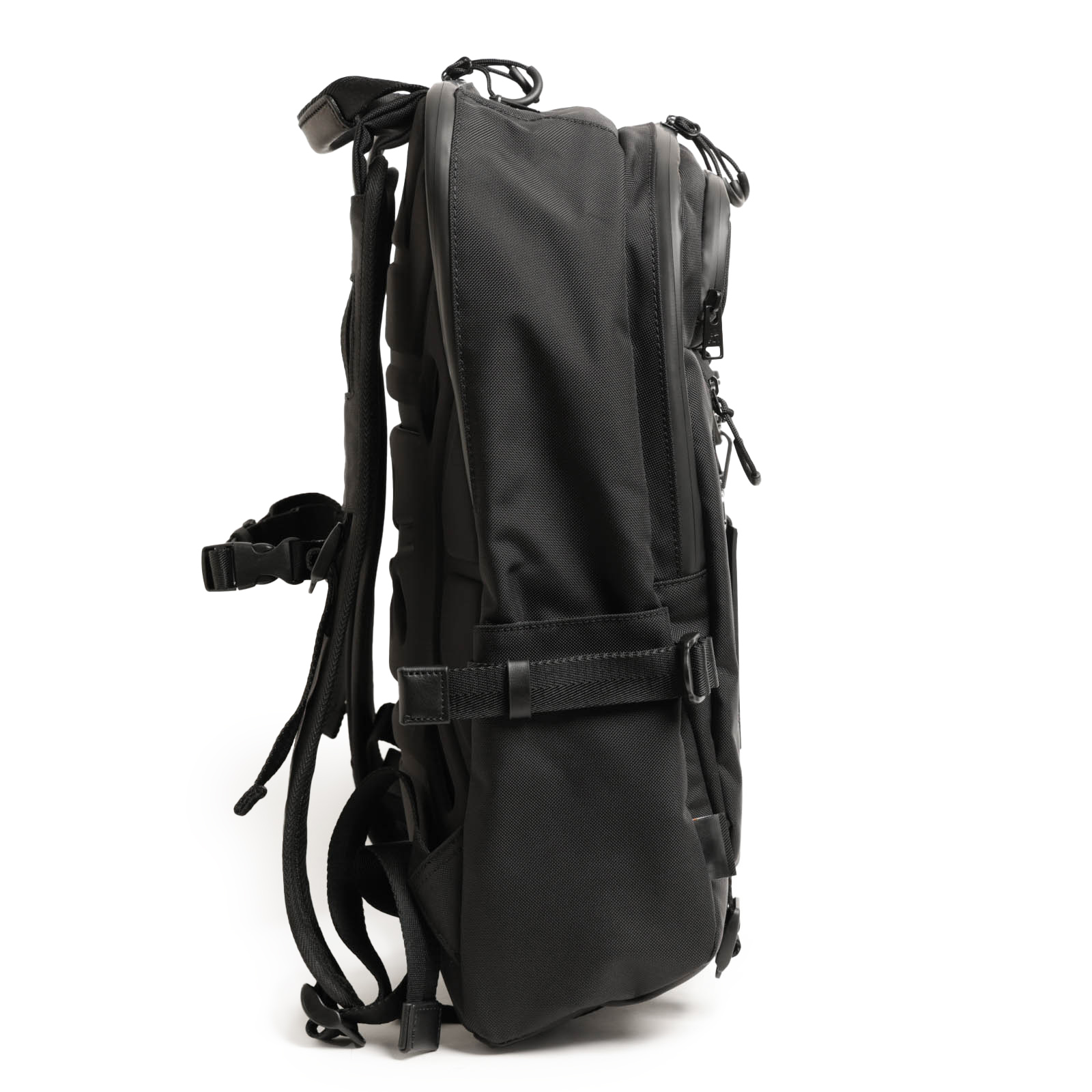 そんなボディの機能性を損なわない様に、ジップは止水仕様にしており、機能性もさることながら、ジッパーパーツを見えなくすることで、バッグ全体のミニマルな雰囲気を損ないません。
