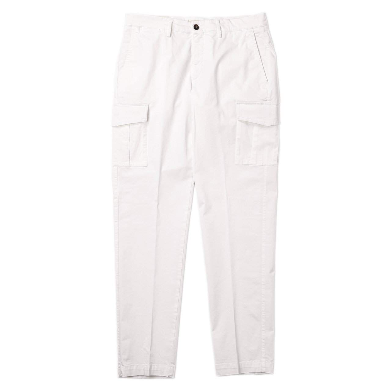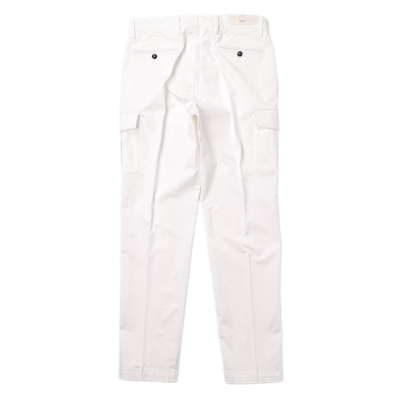 武骨に見えがちなカーゴパンツですが、ノープリーツ+細身のシルエットで都会的に。BRIGLIAの作りの確かさを感じさせる両玉縁ポケットやコインポケット、BRIGLIAオリジナルのボタンなどでクラス感をプラス。